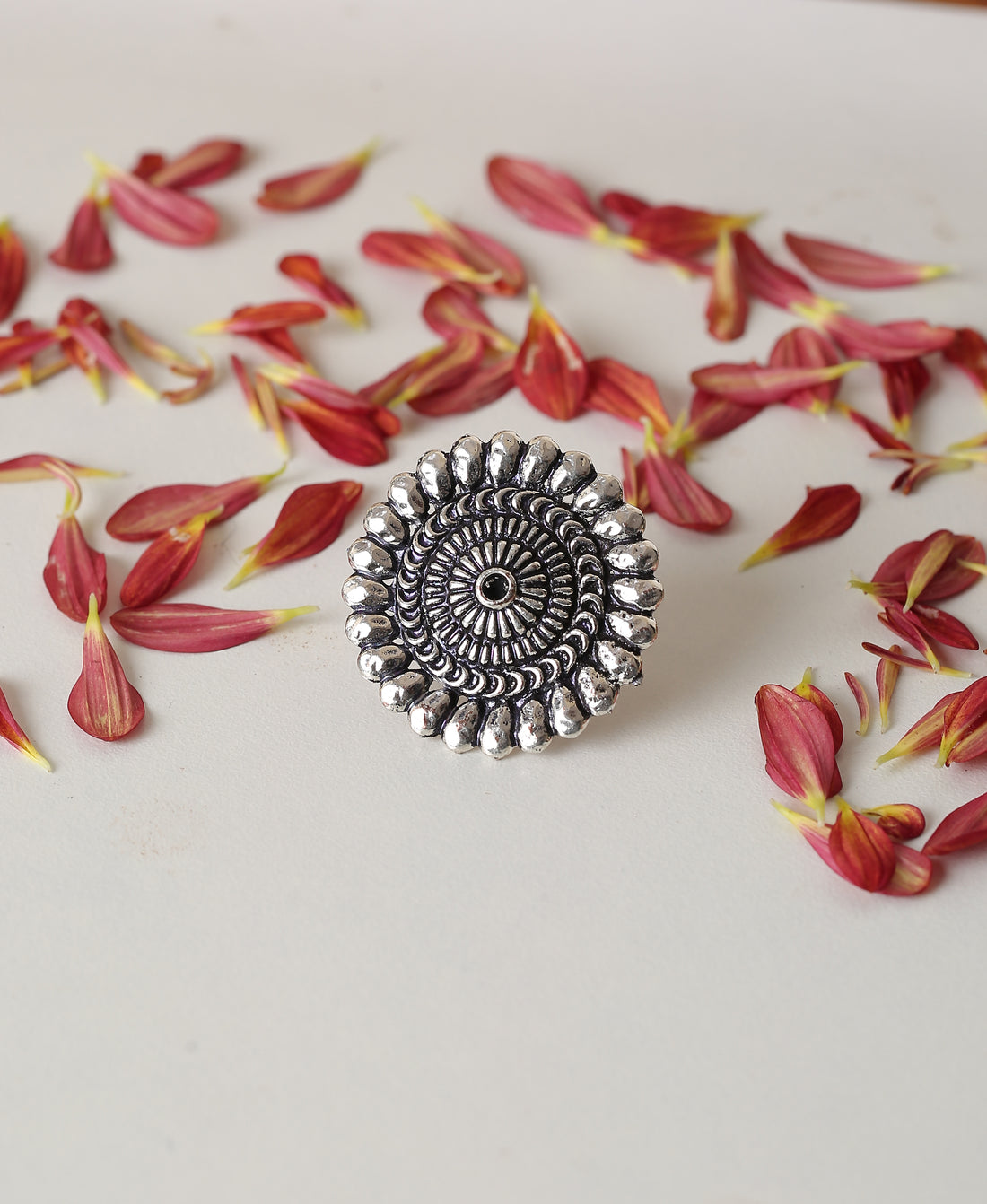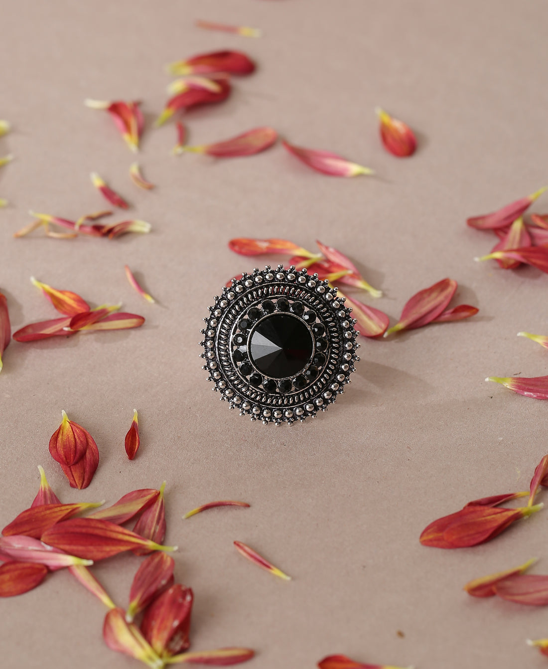 <p>Add a dash of charm to your style with the Niska Silver Oxidised Ring! Its...