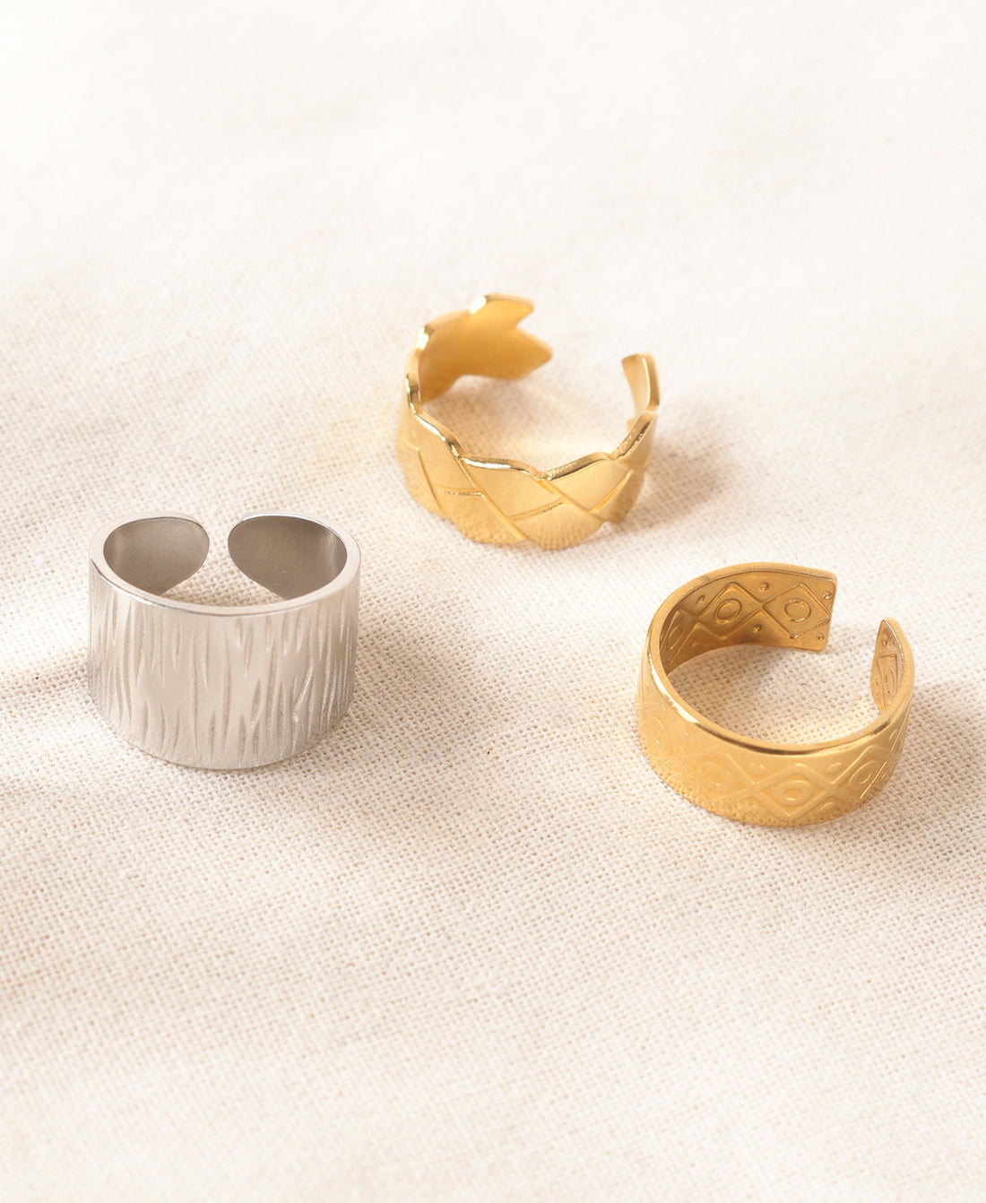 Elevate your finger game with our Anti-Tarnish Textured Ring Pack! This playful trio brings texture...