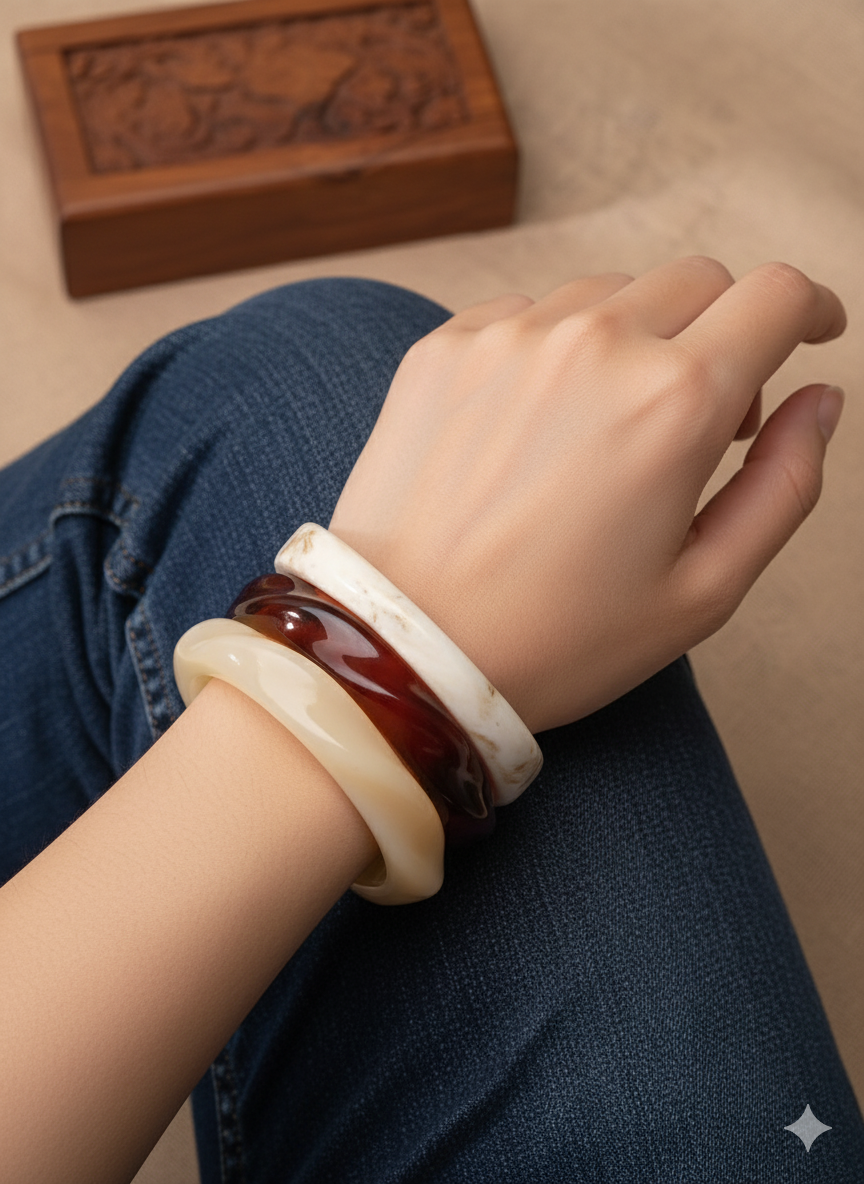 Add a splash of retro charm to your look with this playful Vintage-Style Resin Bangle...