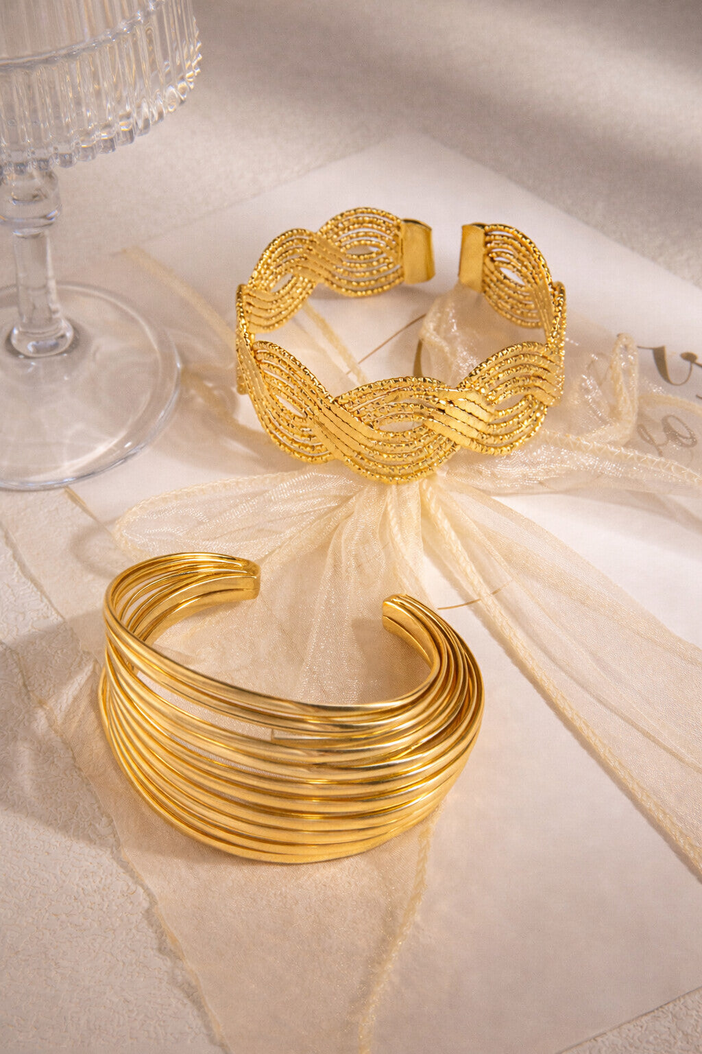 Aurora Gold-Plated Wave Cuff Bracelet – Modern & Anti-Tarnish