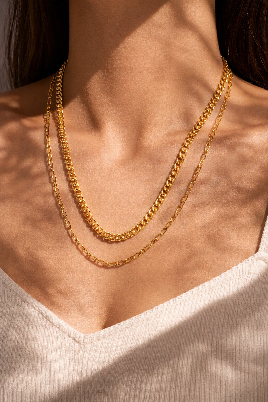 18K Gold Plated Modern Link & Rope Style Necklace