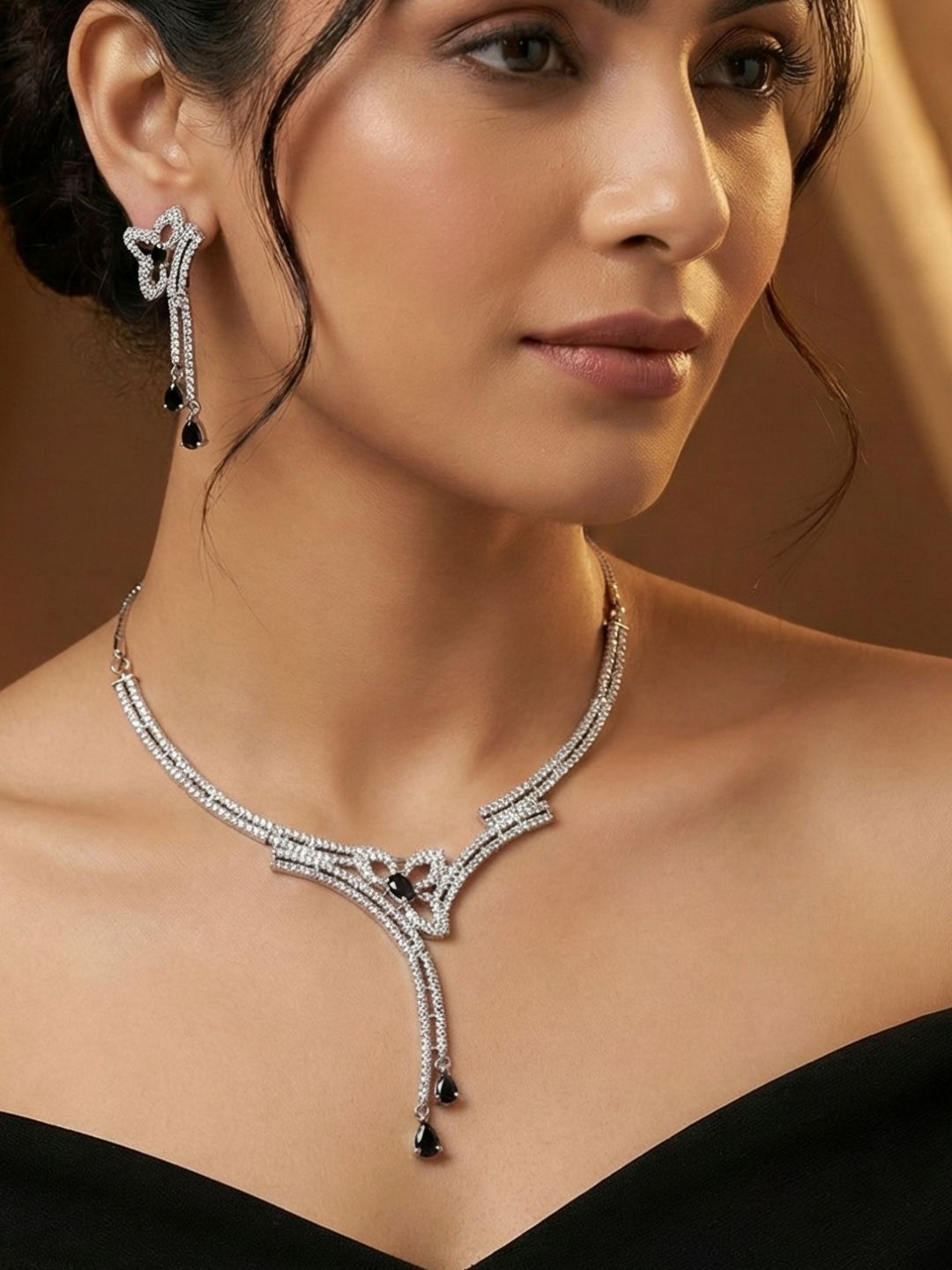 Niska Rhodium-Plated Brass White Cubic Zirconia Studded Necklace Set (Copy)