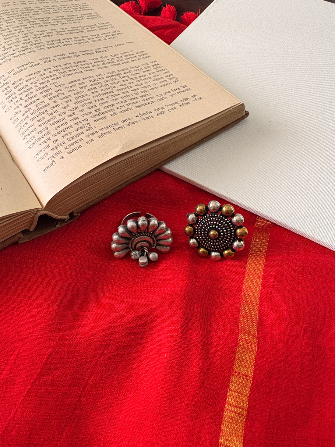 Smriti Floral Silver Oxidised Ring Pack Of Tow