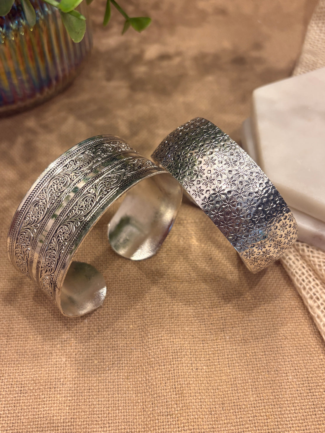 Zaika Silver Oxidized Bracelet Cuff Pack of 2