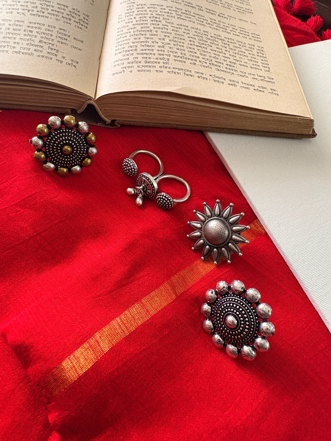 Shreya Embossed Glden & Silver Oxidized Bracelet Cuff