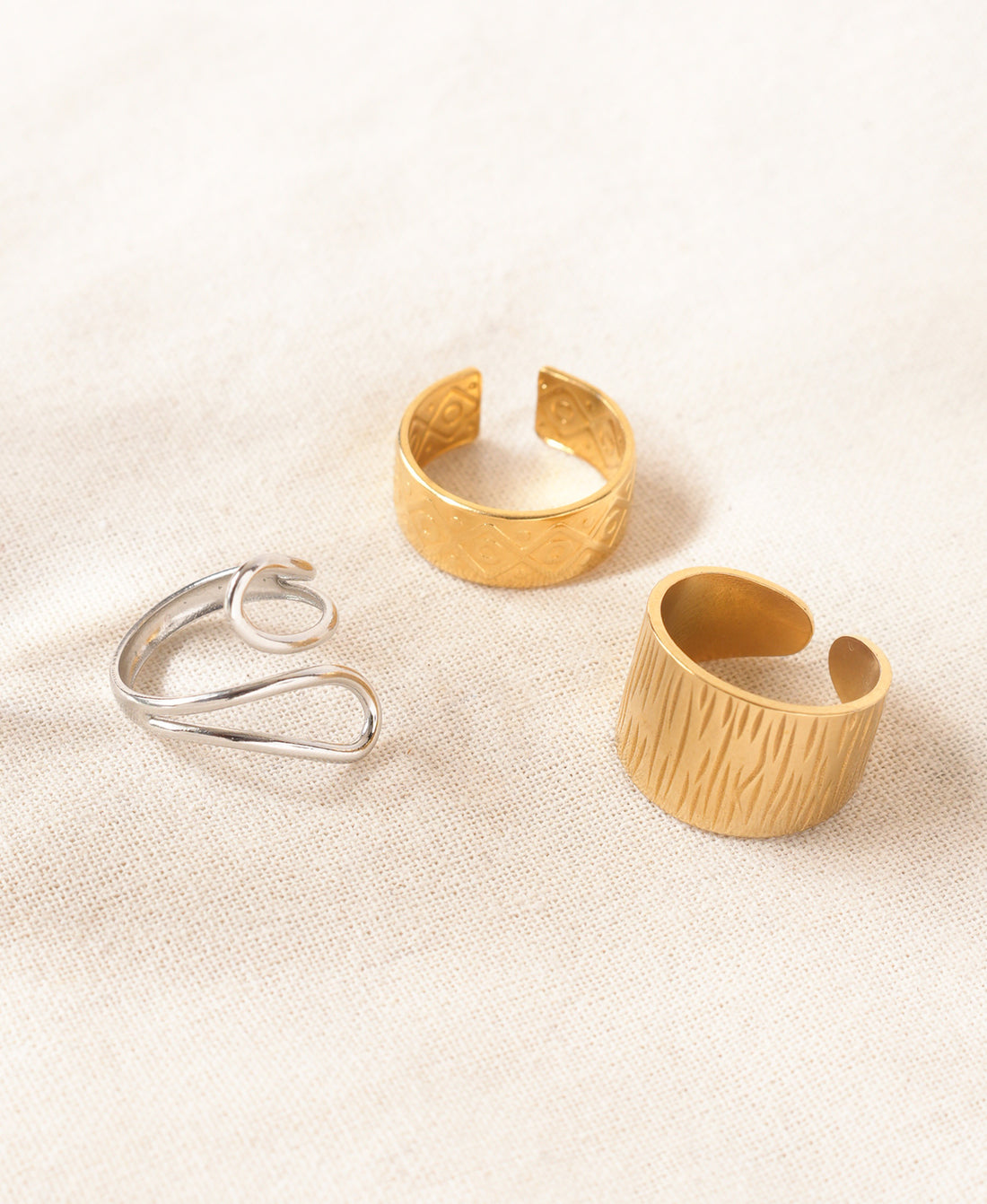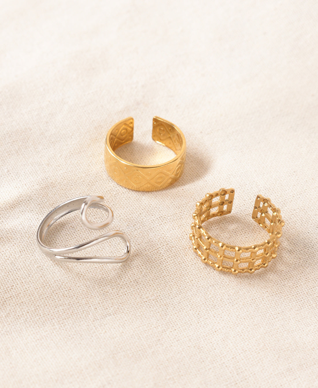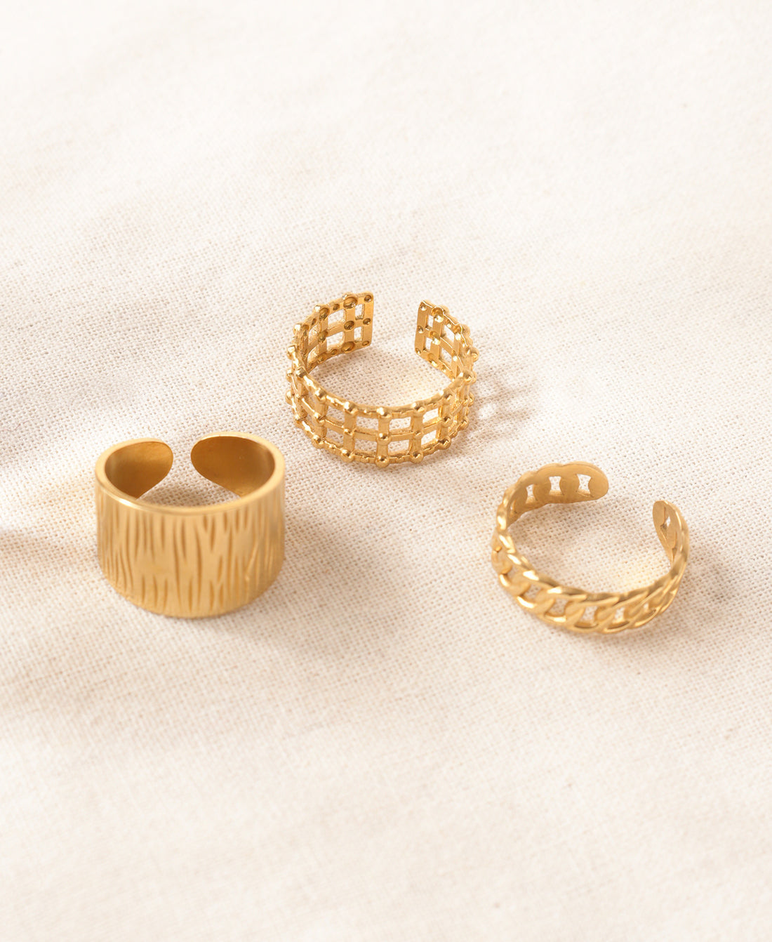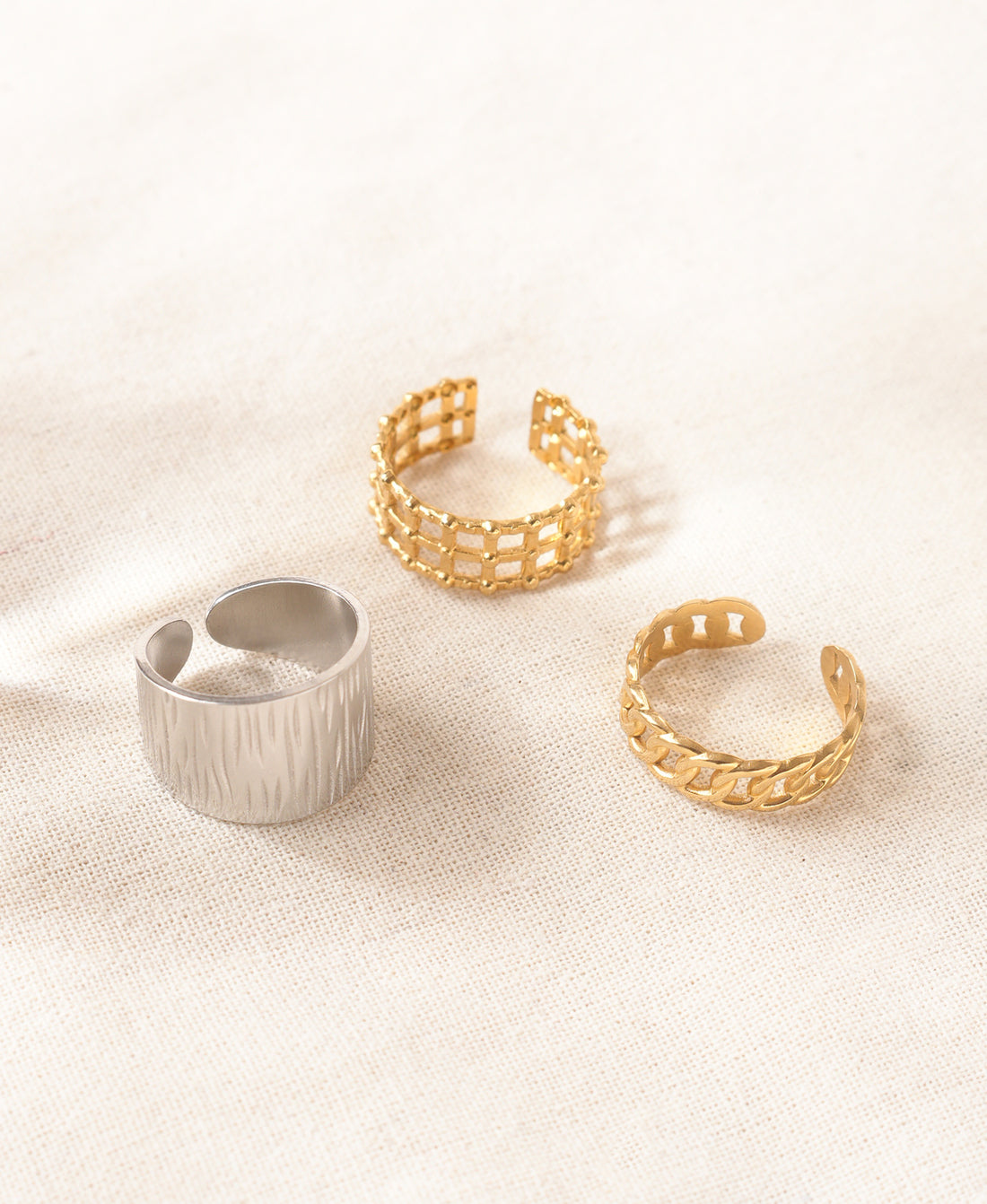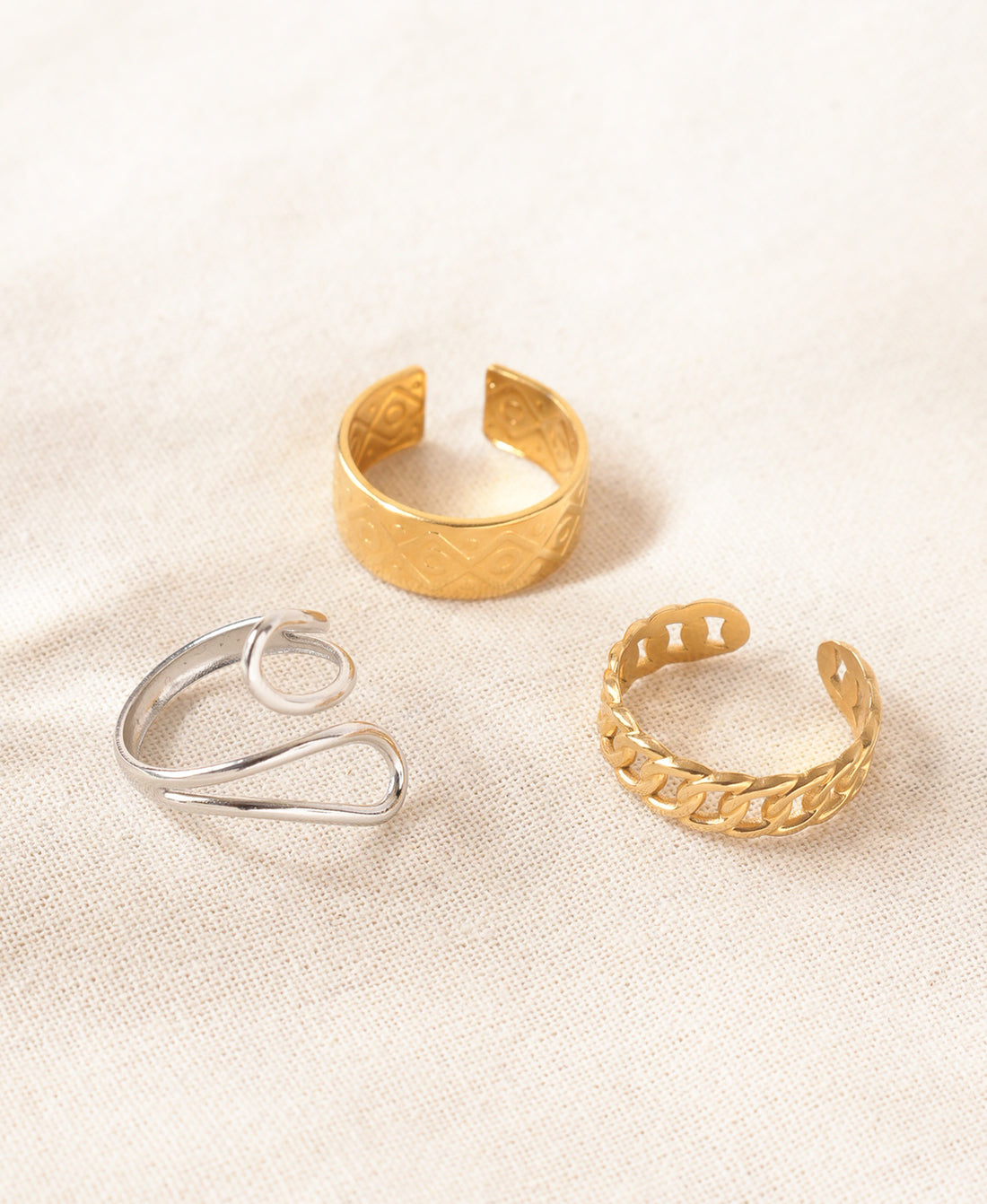 Elevate your finger game with our Lustrous Link Anti-Tarnish Ring Trio Set! These stackable stunners...
