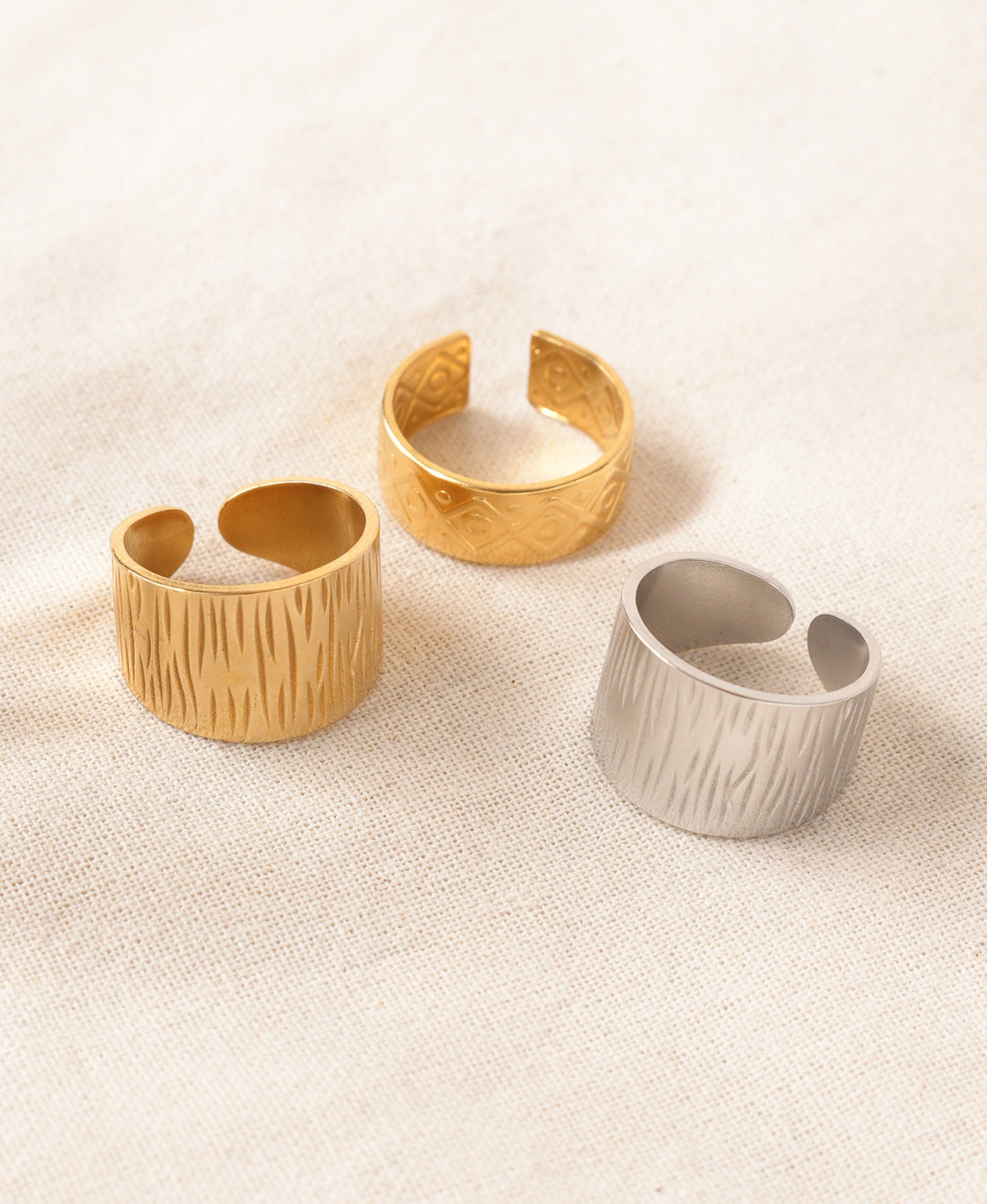 Elevate your finger game with this playful Textured Trio Anti-Tarnish Gold Adjustable Ring Set! Stack...