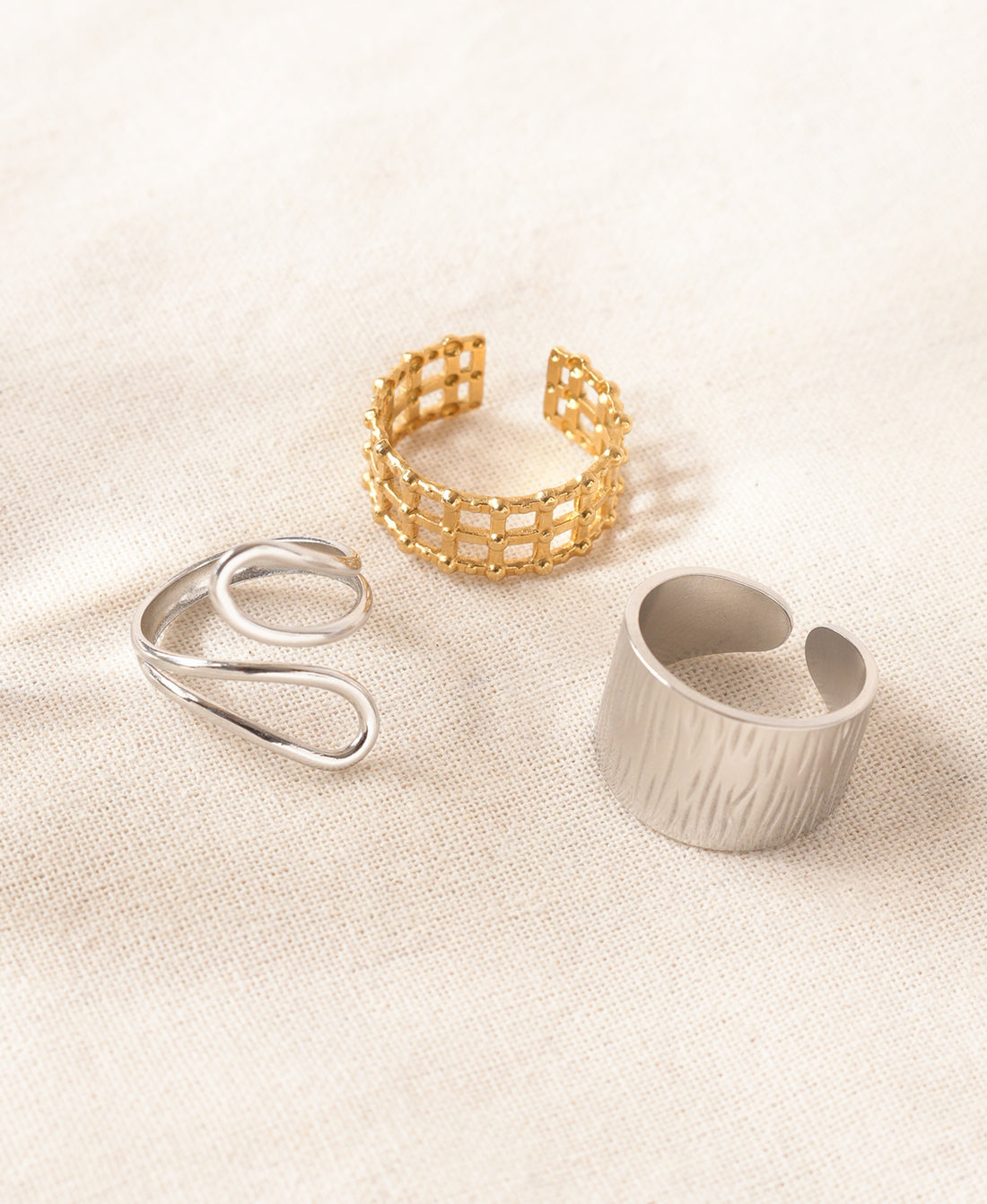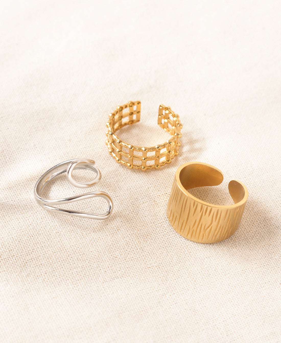 Bold Weave Anti-Tarnish Ring-Combo of 3