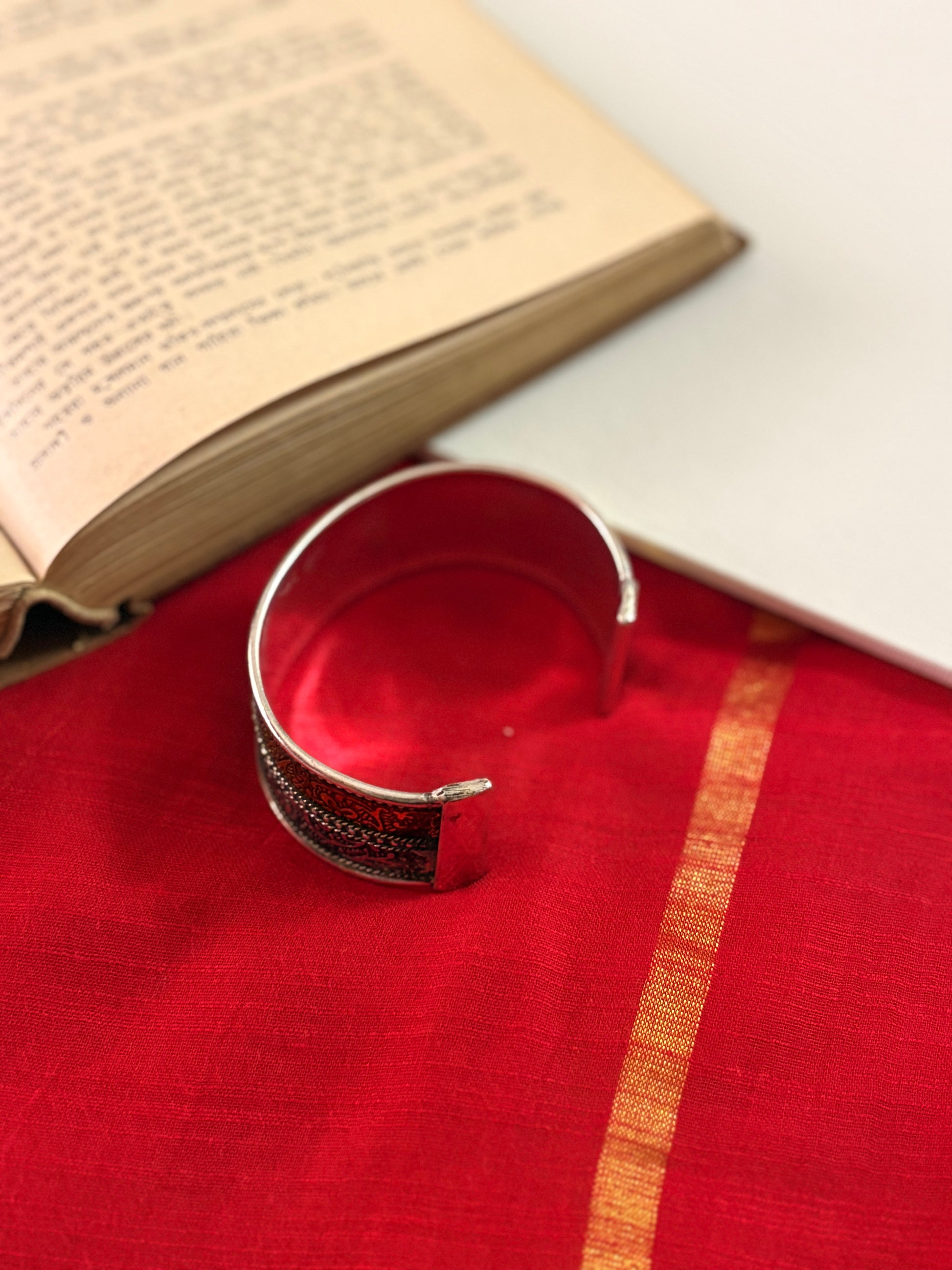 Chaya Floral Embossed Silver Oxidized Bracelet Cuff