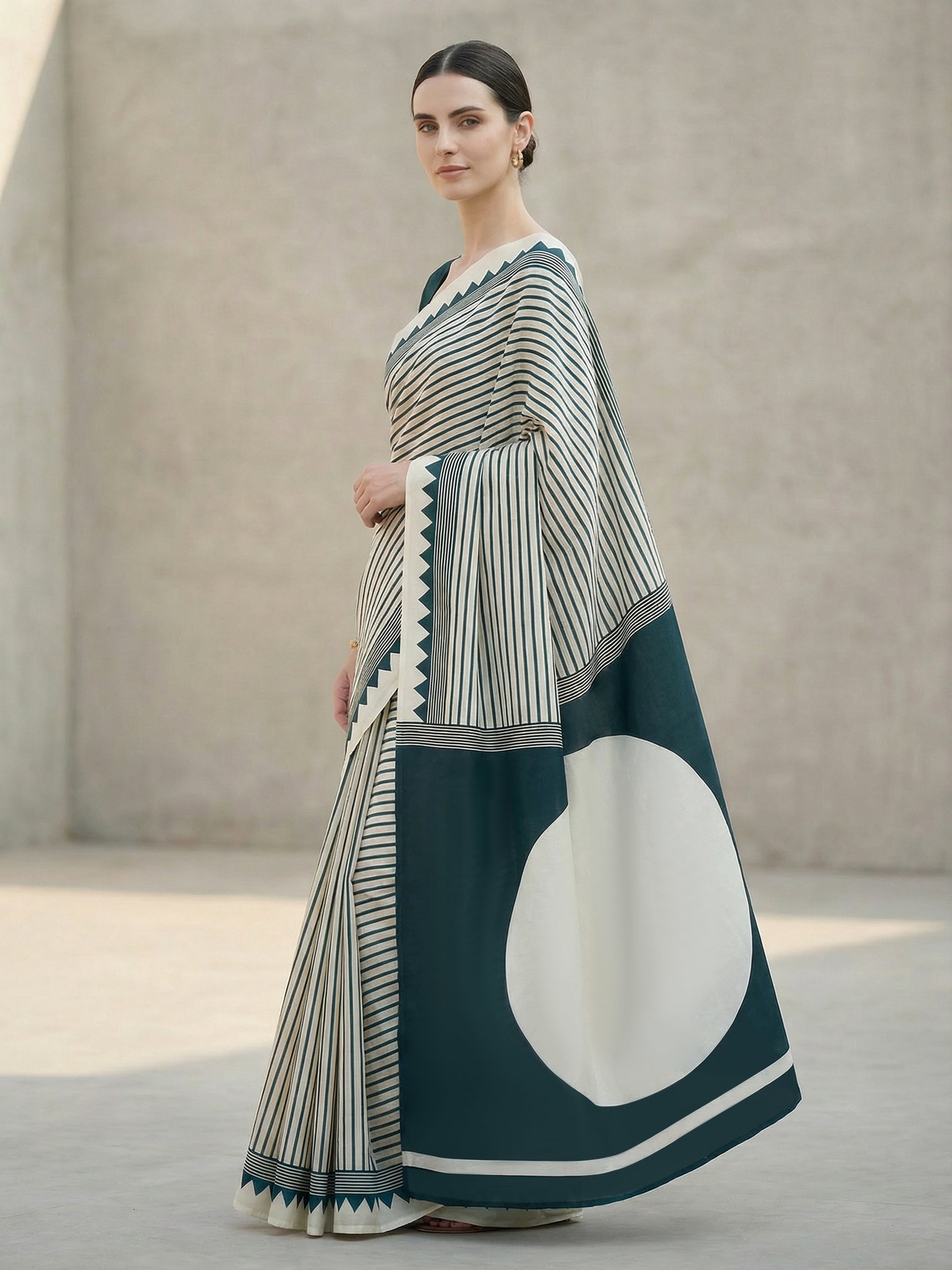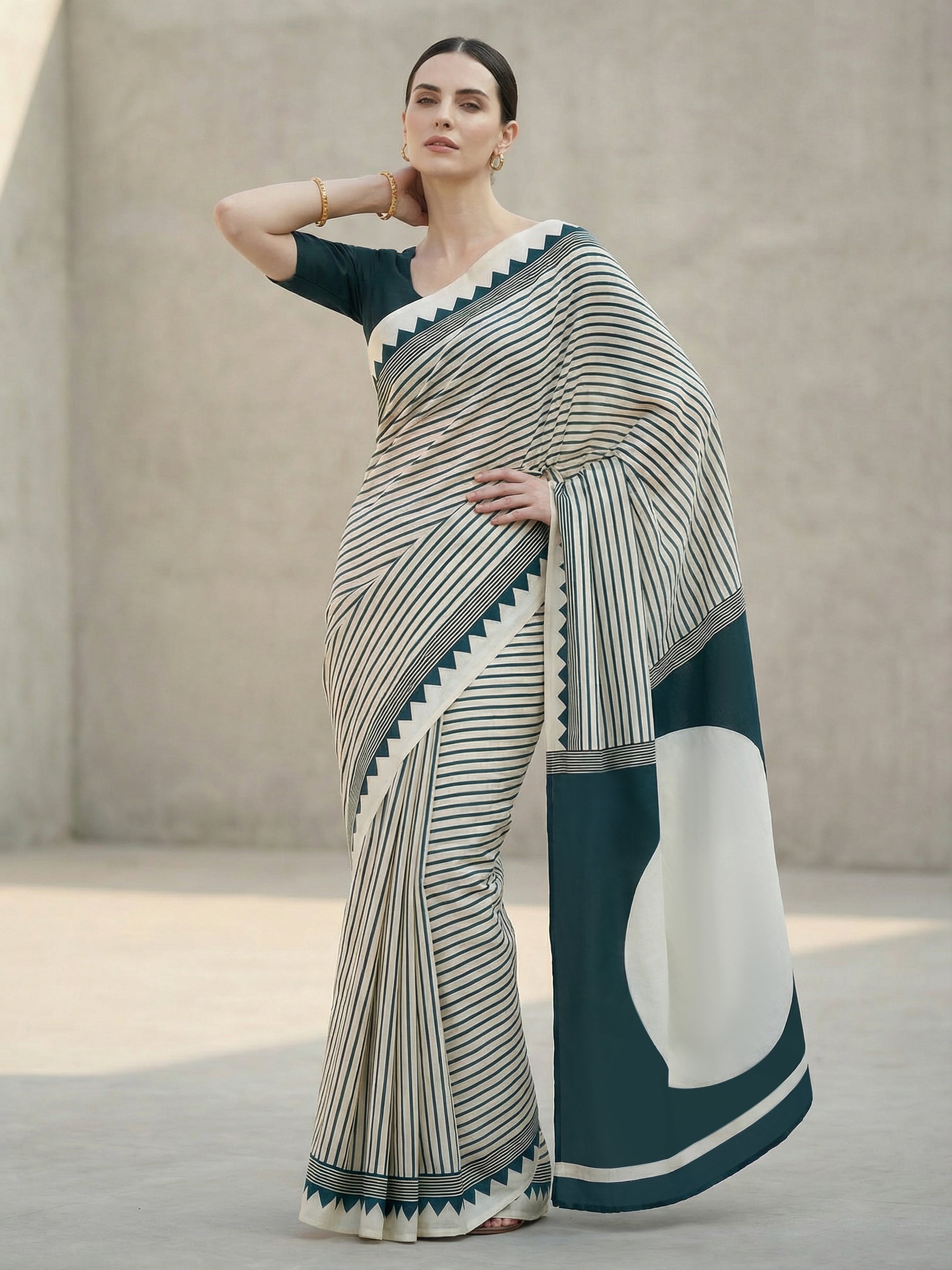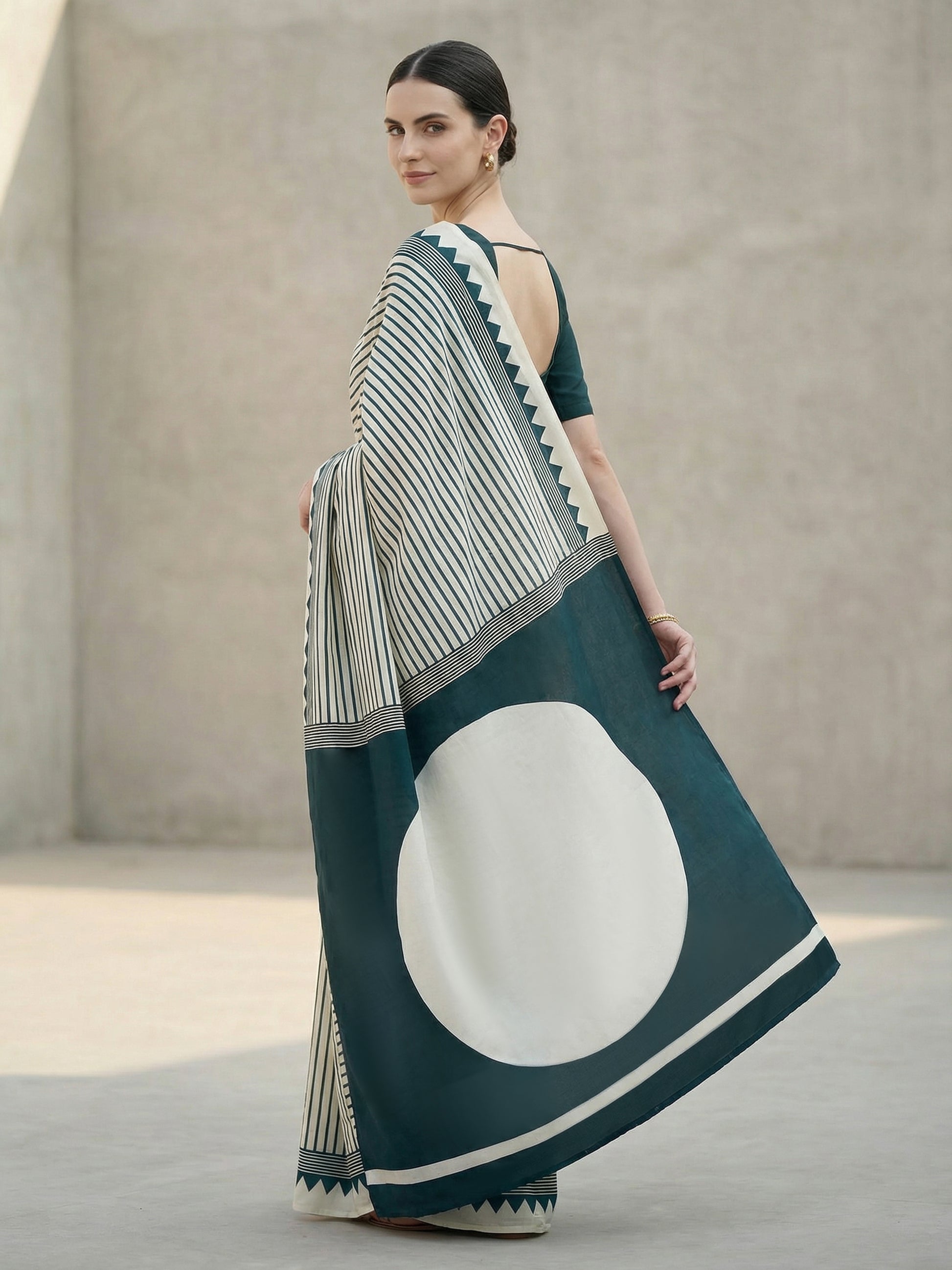 Drape yourself in timeless elegance with this stunning Cream Red Dot Ajrakh Modal Silk Saree. Featuring the intricate Ajrakh print technique paired with luxurious modal silk, this saree effortlessly blends traditional craftsmanship with modern comfort. The cream base adorned with striking red dots creates a captivating visual appeal, perfect for celebrations, festivals, or special occasions. The soft, breathable fabric ensures you stay comfortable throughout the day while turning heads with its sophisticated charm. A wardrobe essential that celebrates heritage with a contemporary twist.