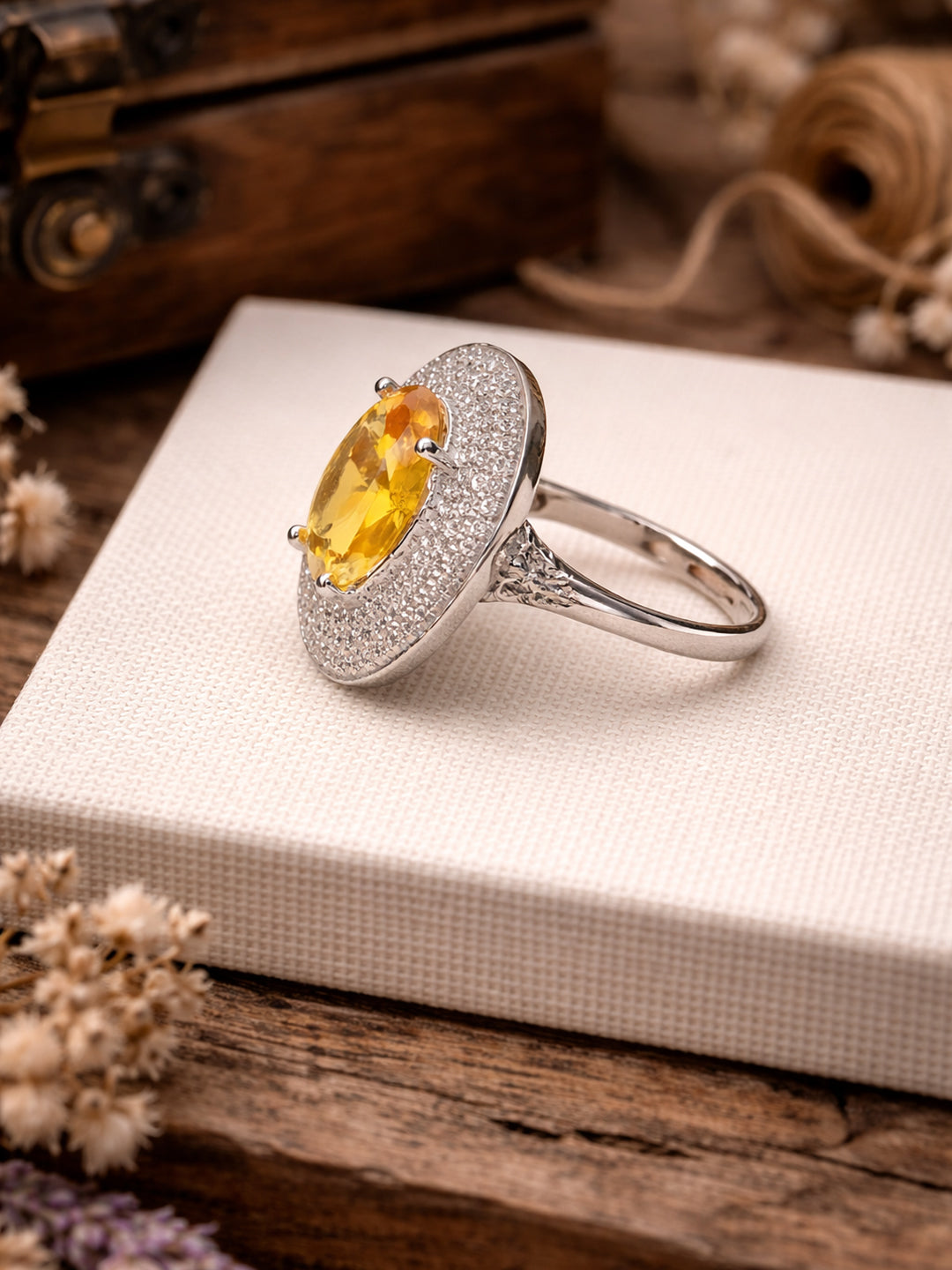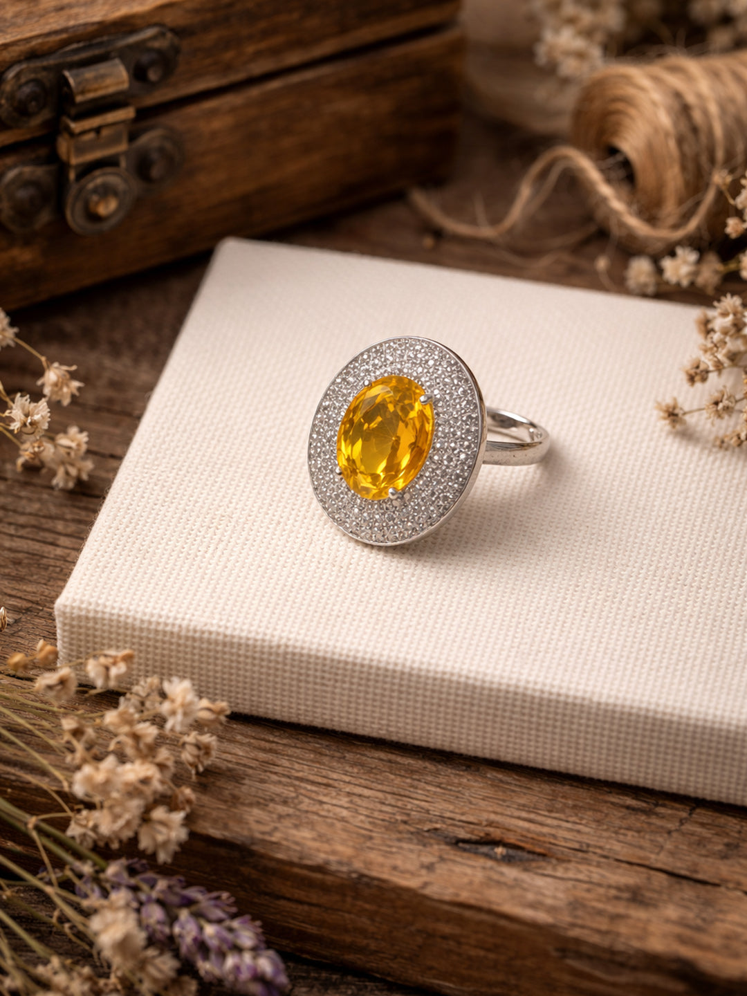 Doozie Yellow American Diamond Adjustable Ring