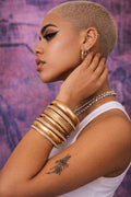 Elevate your ethnic ensemble with this stunning 14-piece bangle set, where geometric rhombus twists meet timeless tradition. Each bangle is crafted with anti-tarnish technology, keeping your jewelry looking radiant through countless celebrations and everyday moments. Perfect for layering or mixing and matching, this versatile collection lets you express your unique style while honoring classic aesthetics. Whether you're dressing up for a festival or adding flair to your daily look, these bangles are your go-to accessory for that perfect finishing touch.