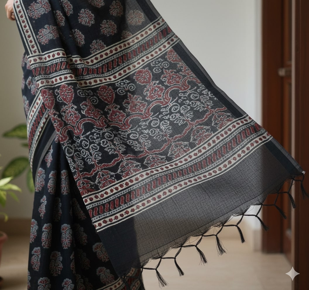 Everyday Bloom – Cotton Ajrakh Printed Saree