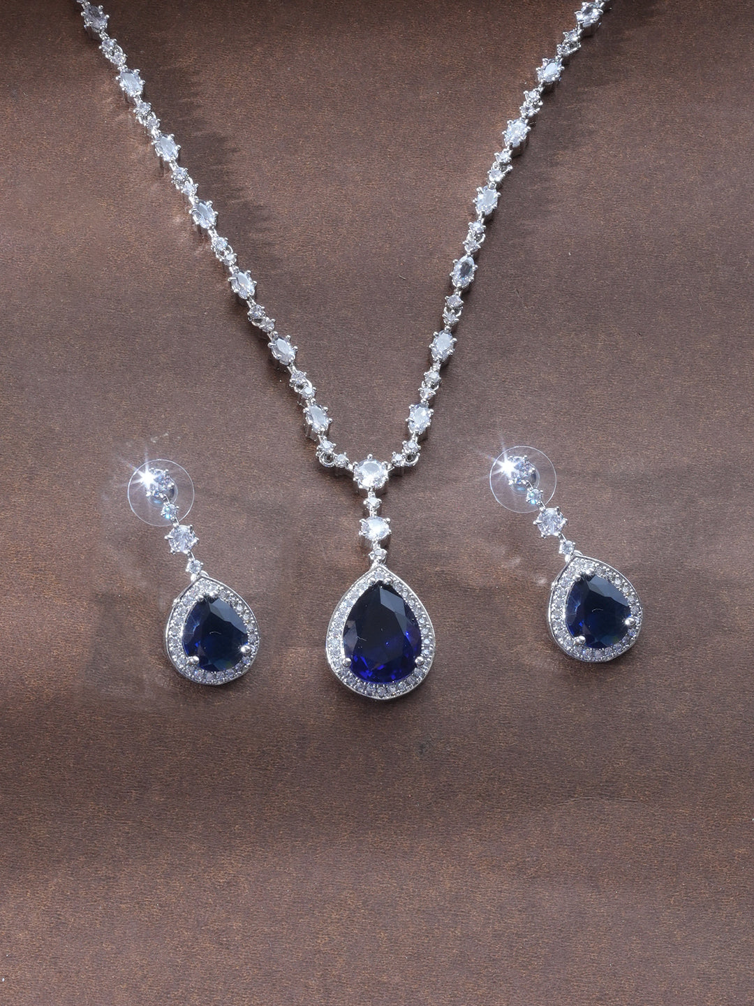 Add a splash of sparkle to your look with this Bluel Stone Studded Jewellery Set. Perfectly playful, it features shimmering blue stones that catch the light and eyes alike. Whether dressing up or down, this set brings a fun, vibrant touch to any outfit—because who says jewelry can’t be a little mischievous?