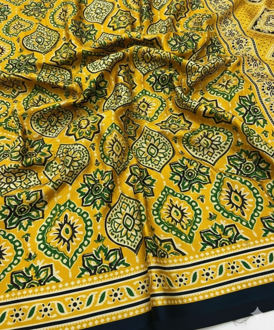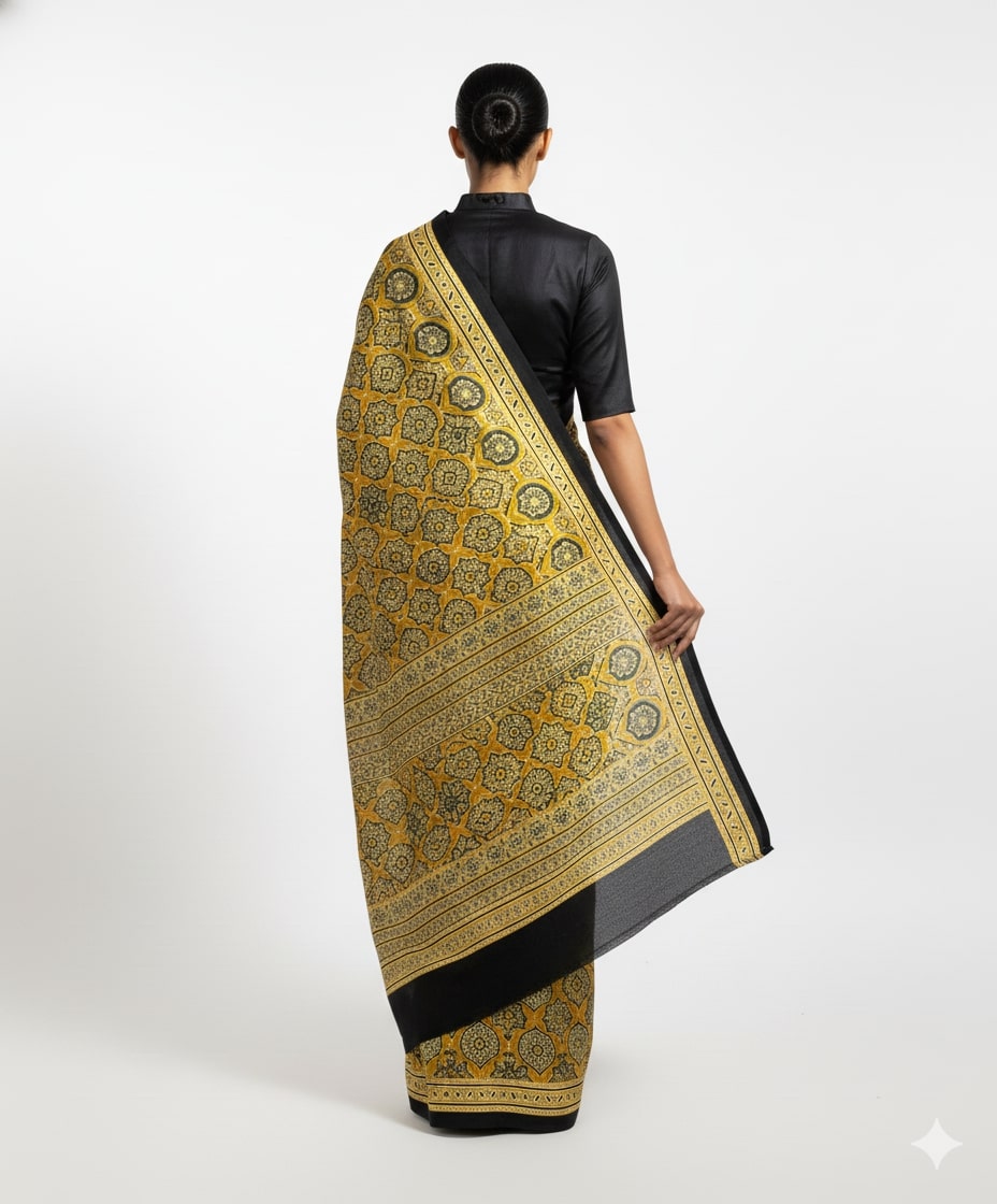 Niska Mustard Noir Ajrakh Print Modal Saree