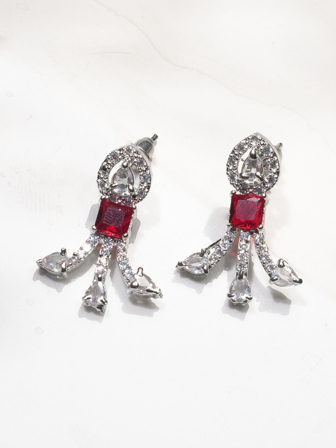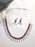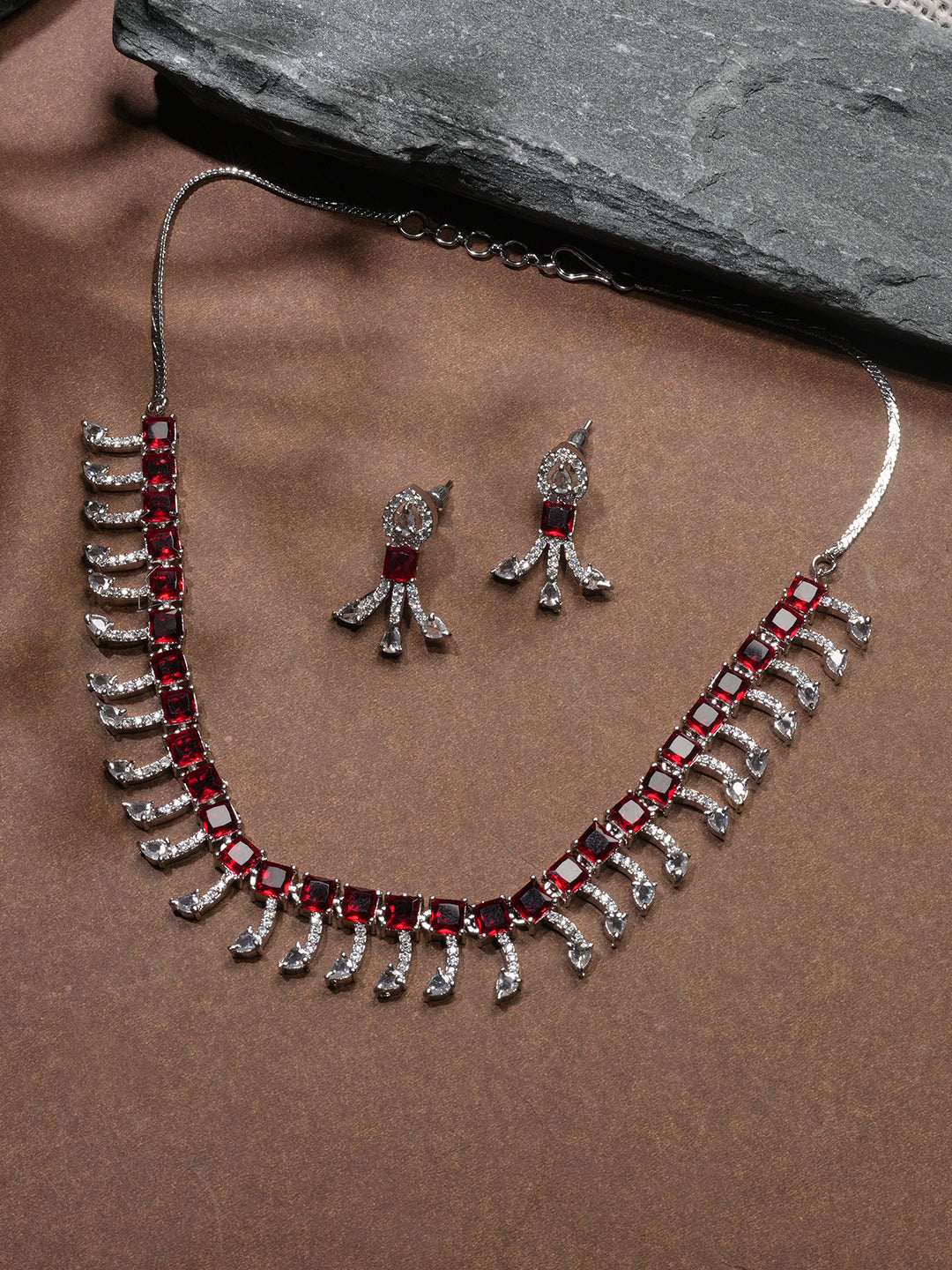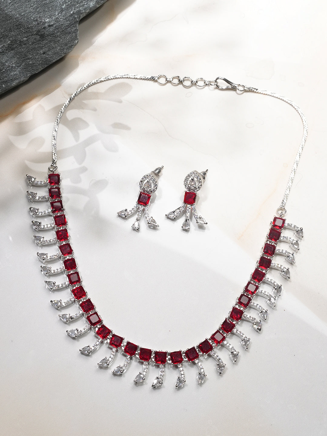 Niska Rhodium-Plated Brass Red Cubic Zirconia Studded Necklace Set