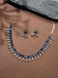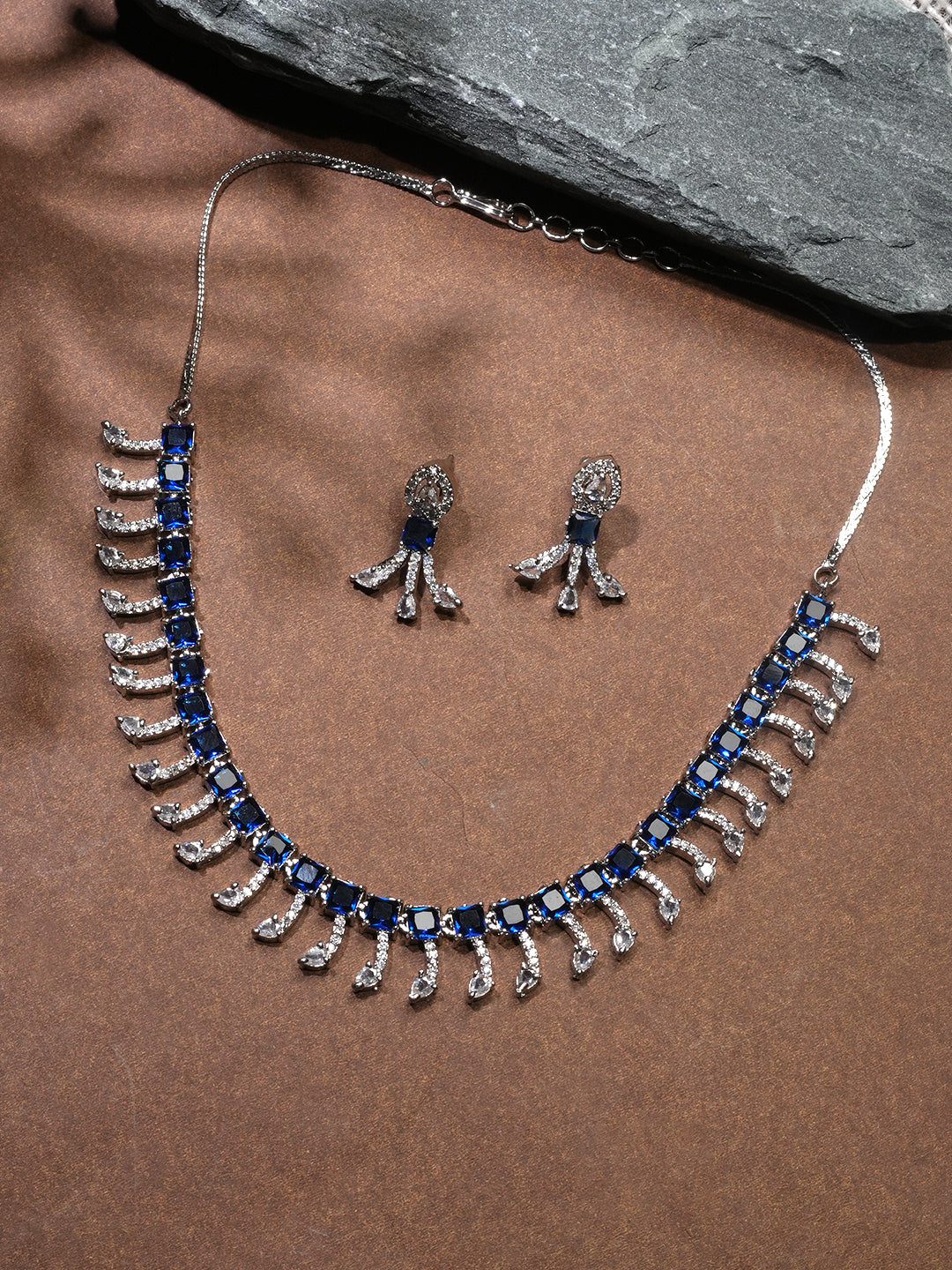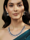 Niska Rhodium-Plated Brass Blue Sapphire & White Cubic Zirconia Studded Necklace Set