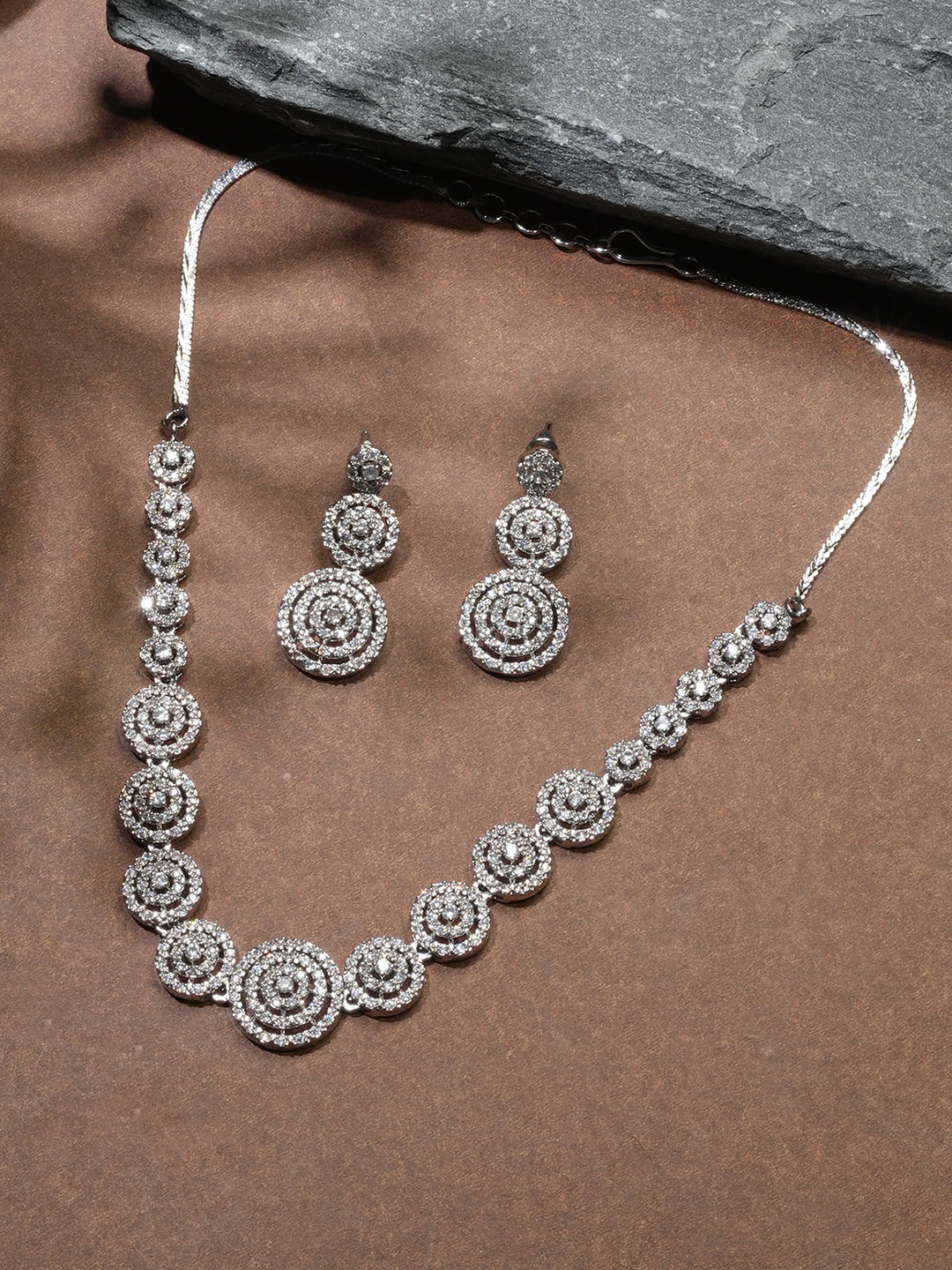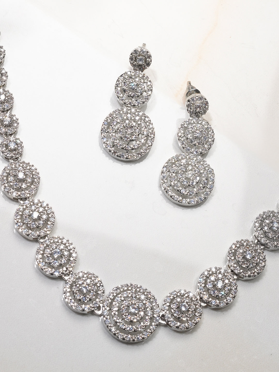 Niska Rhodium-Plated Brass White Cubic Zirconia Studded Necklace Set (Copy)