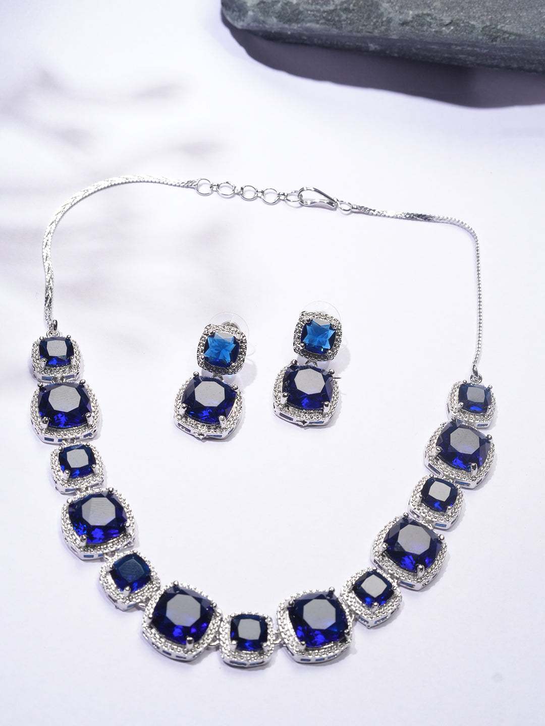 Niska Rhodium-Plated Brass Blue Cubic Zirconia Studded Necklace Set (Copy) (Copy)