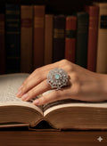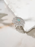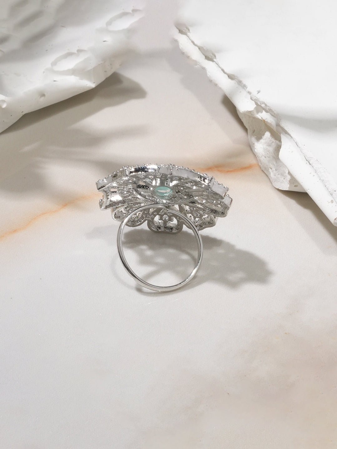 Niska Rhodium-Plated Sea Green & Cubic Zirconia Studded Openable Floral Statement Ring (Copy)