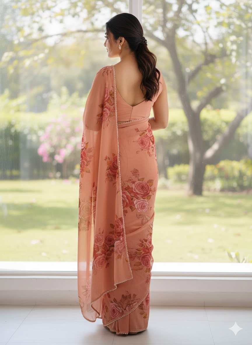 Orange Party Wear Georgette Printed Sarees