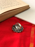 Combining the floral aesthetics with geometric inspired structural shapes, is this glorious Nirav Silver Oxidized Ring. Today we see the role of jewelry changing. Women are looking for easy pieces – this is just that. All pieces promises effortless styling. It’s the kind of jewelry that can be worn with sarees, shirts, dresses and all the way to work.