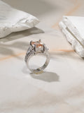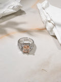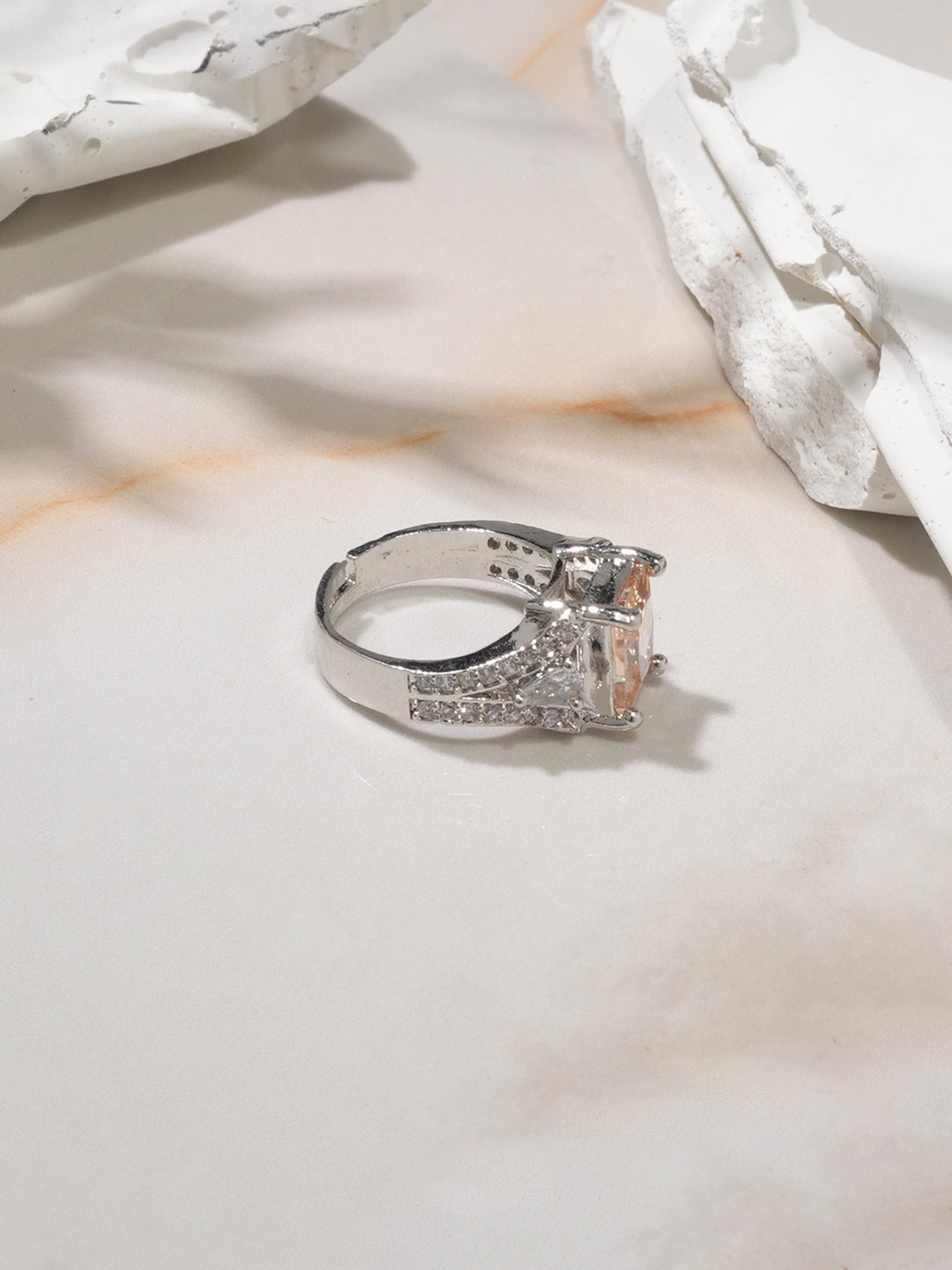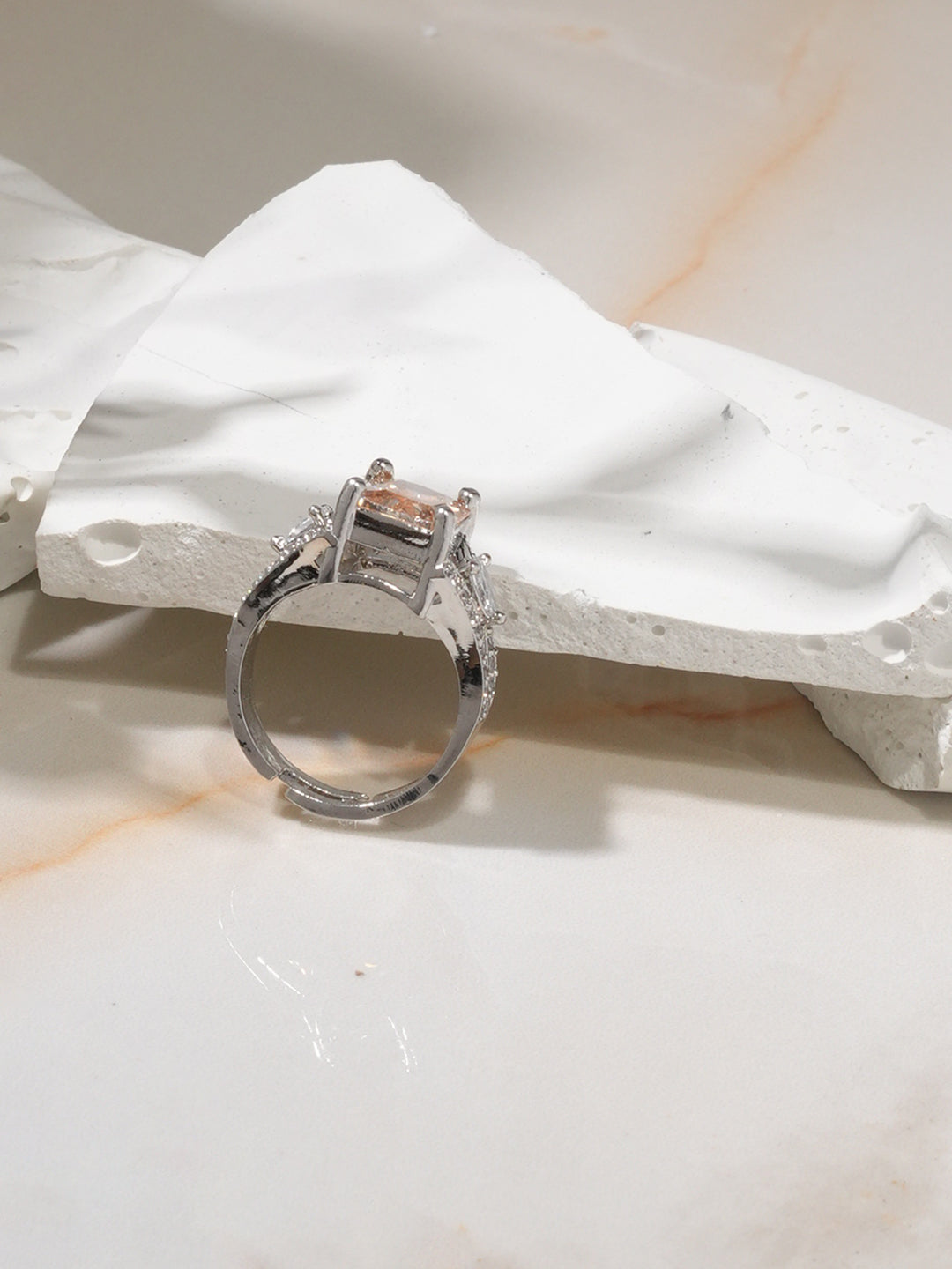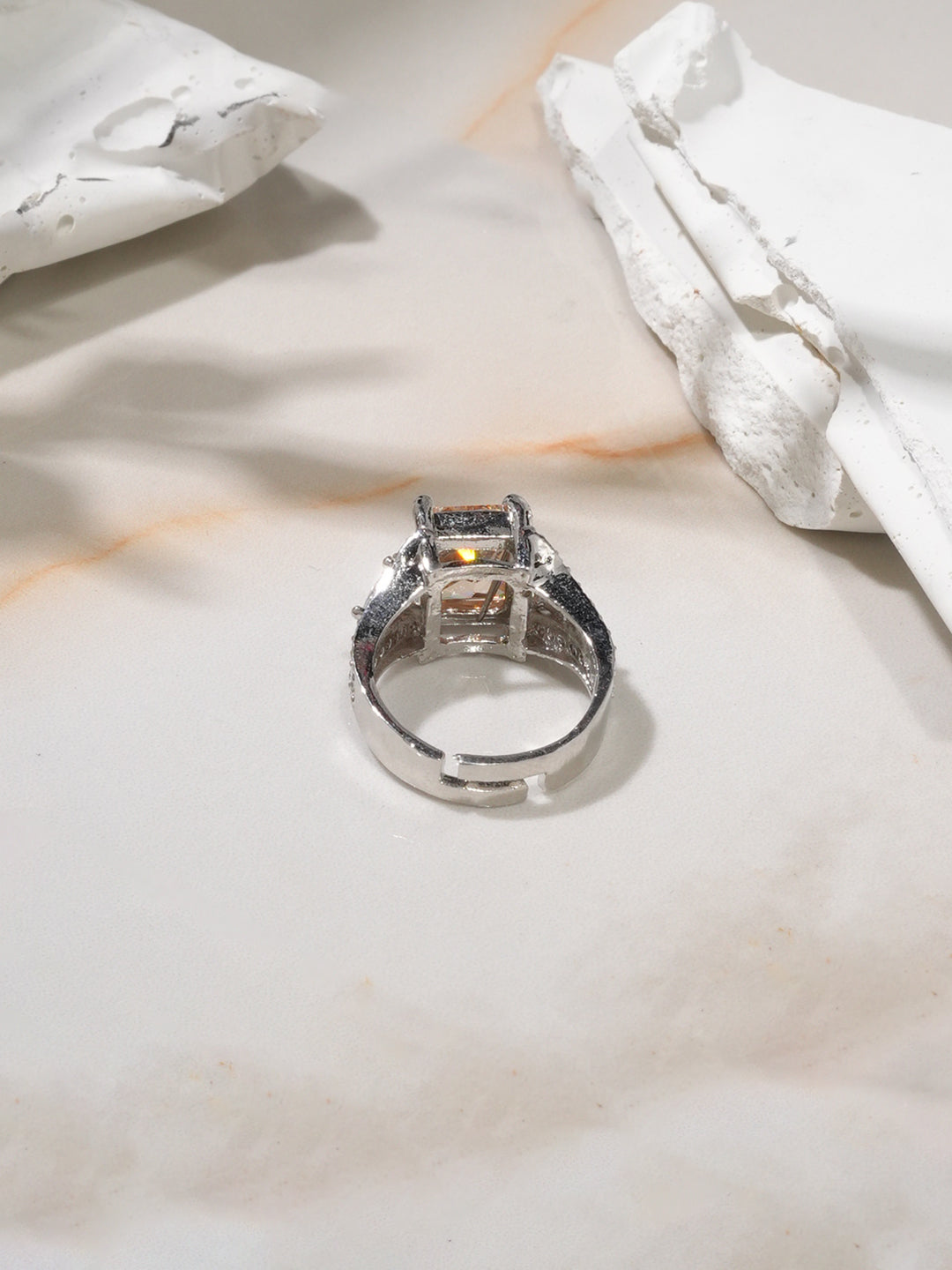 Rhodium-Plated Adjustable Ring with Emerald Yellow Stone and Cubic Zirconia Detailing