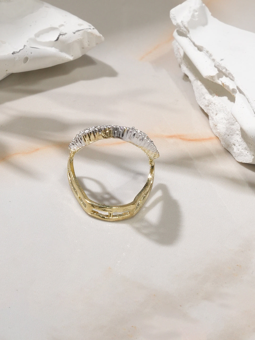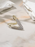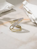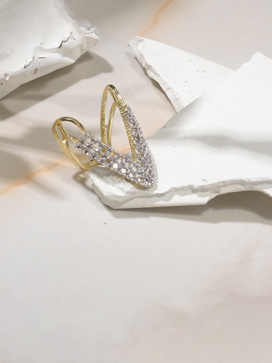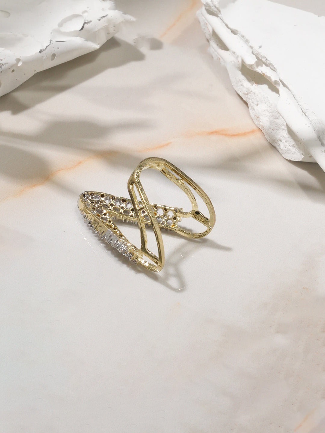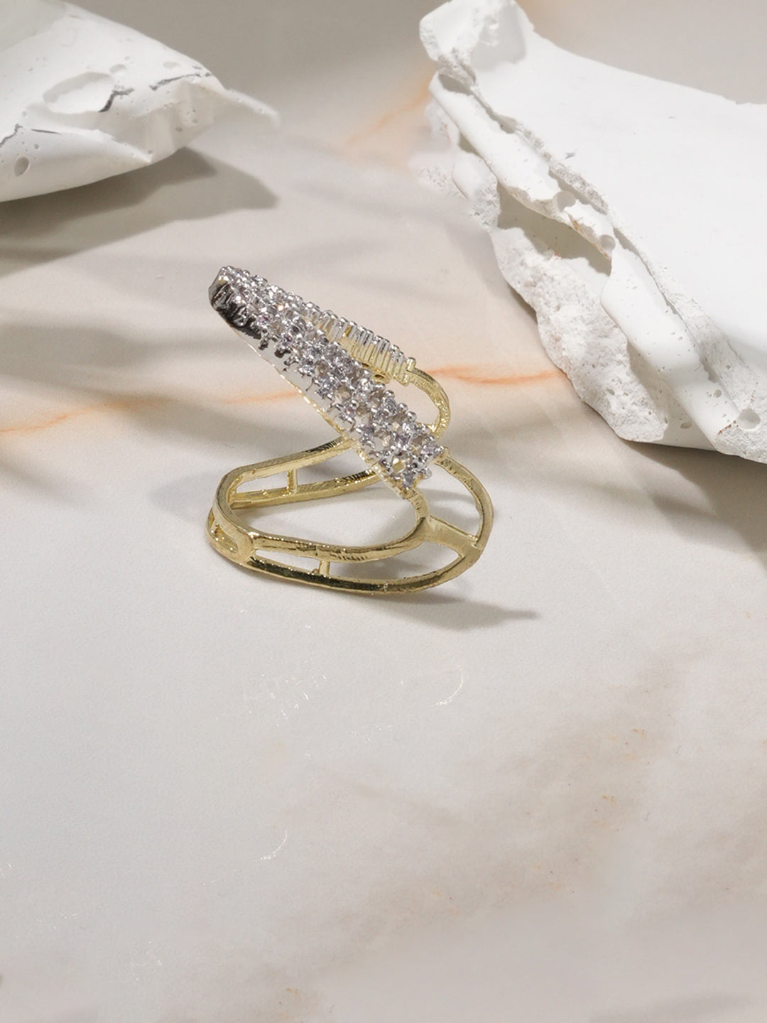 Rings : This rhodium-plated adjustable ring features a bold geometric design, surrounded by round and baguette-cut white cubic zirconia, exuding elegance.