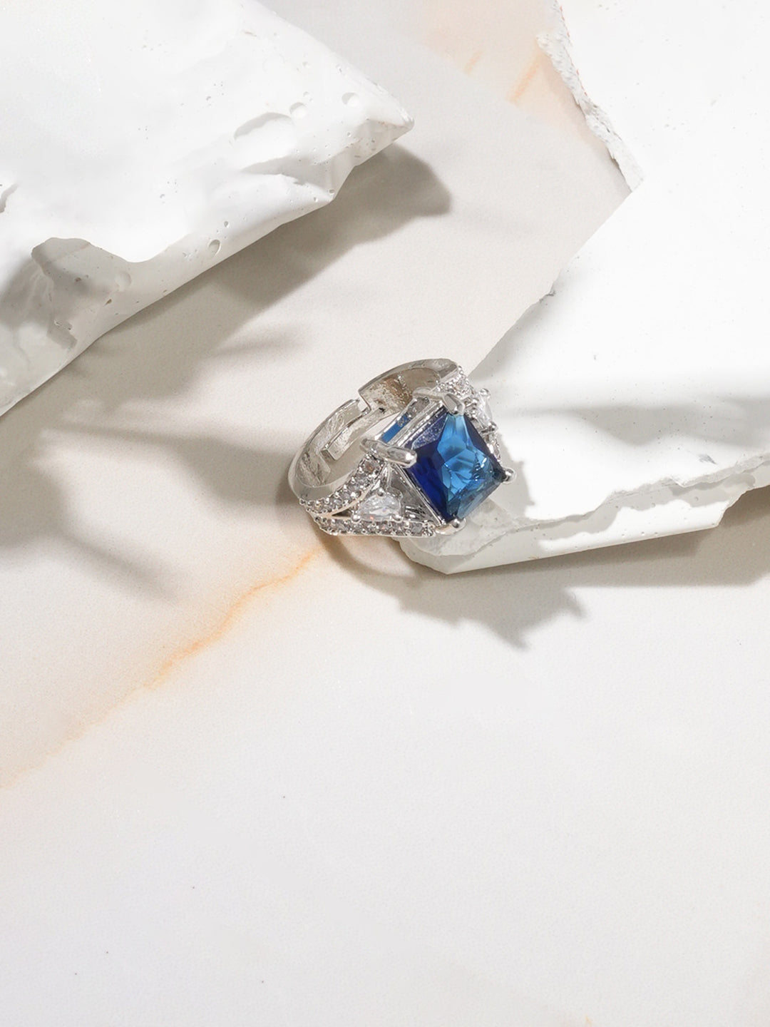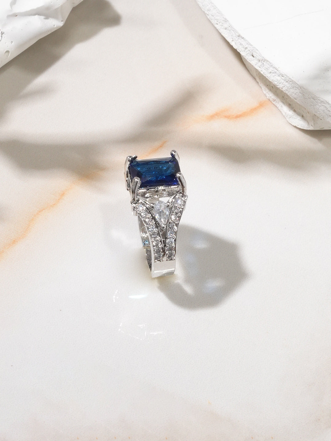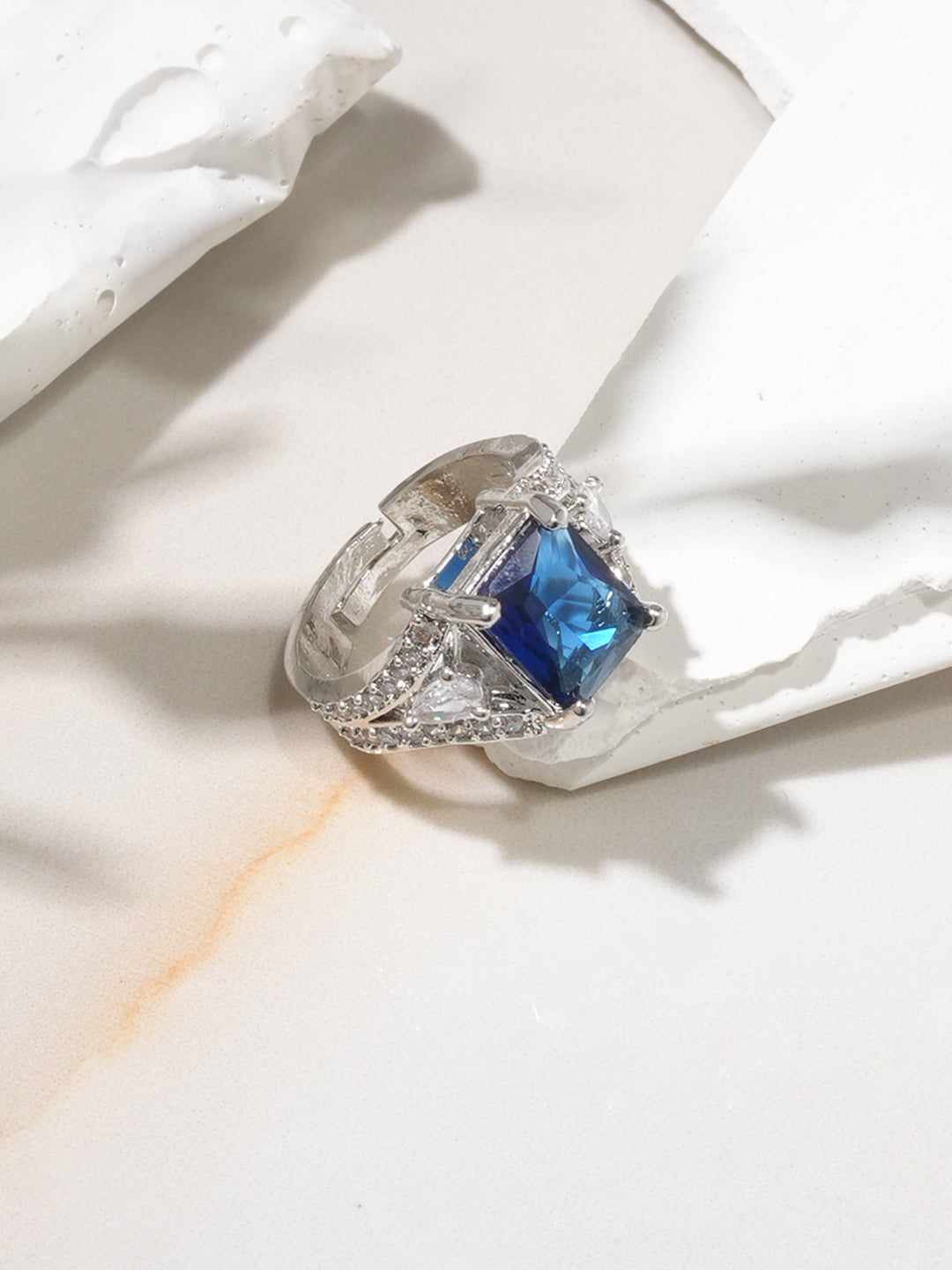 Silver-plated adjustable finger ring has a white American Diamond-Studded details