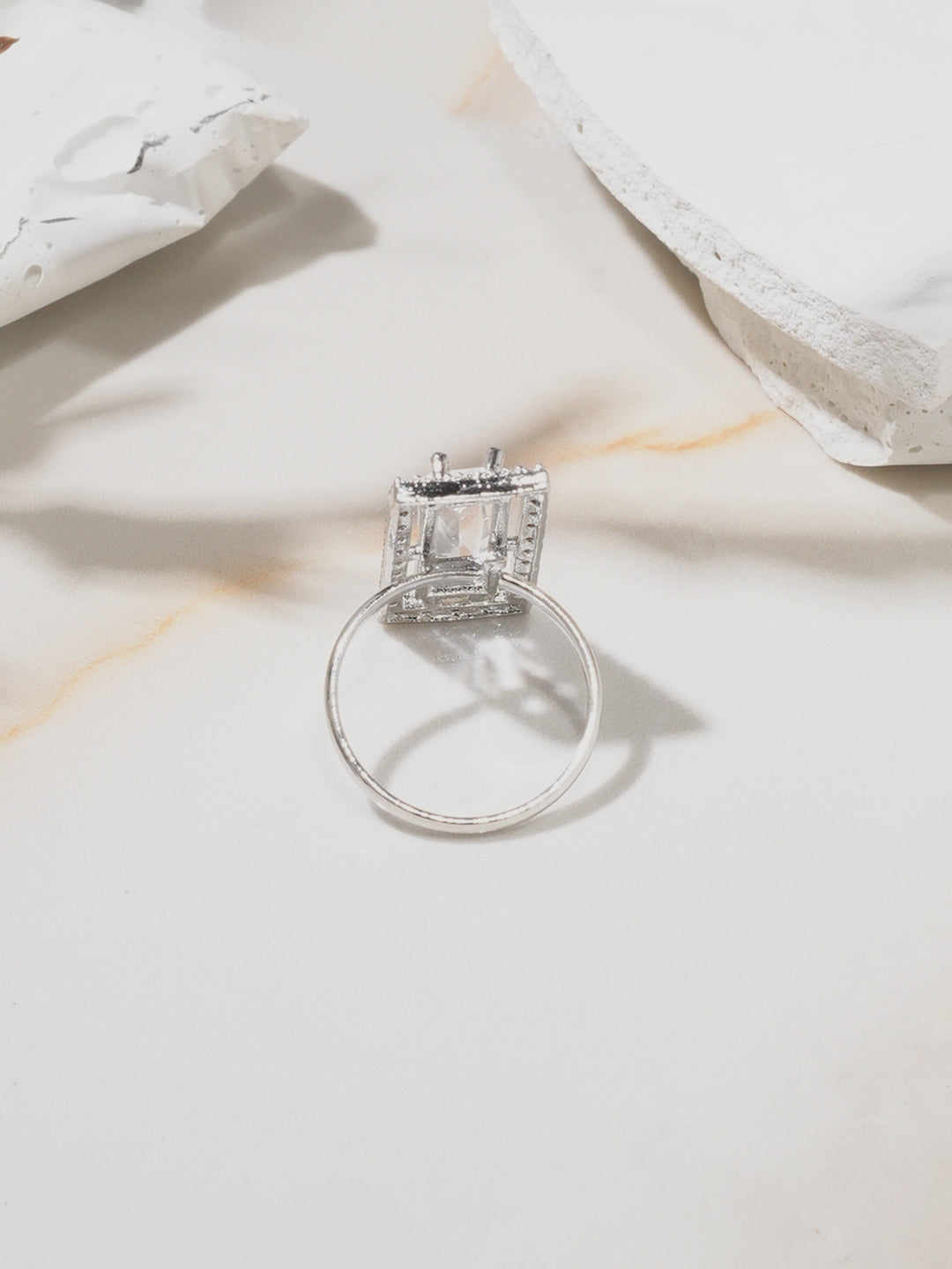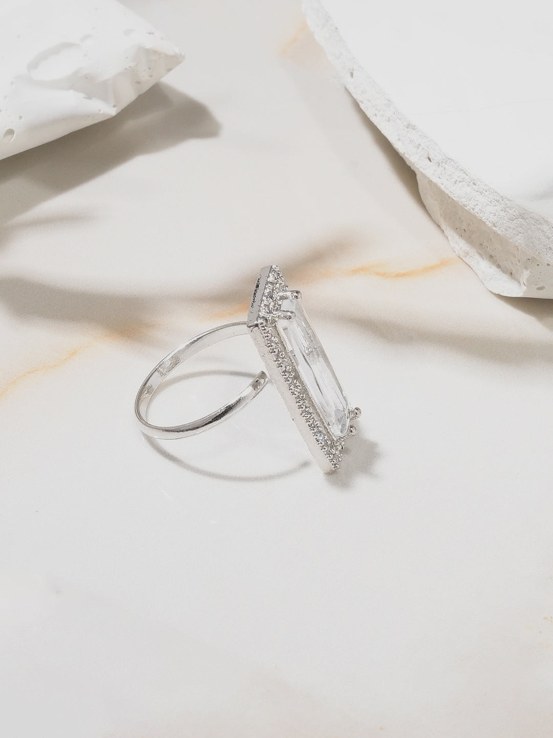Silver-plated adjustable finger ring has a white American Diamond-Studded details