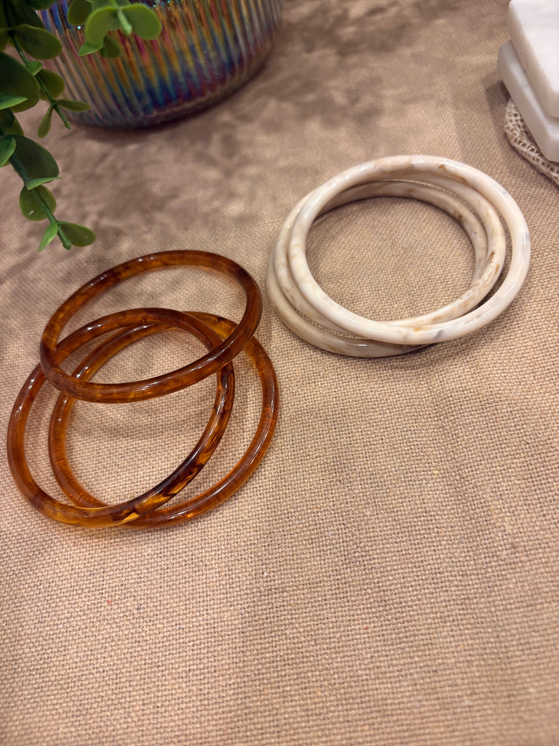 White & Brown Retro Solid Acrylic Bangle Pack of 6
