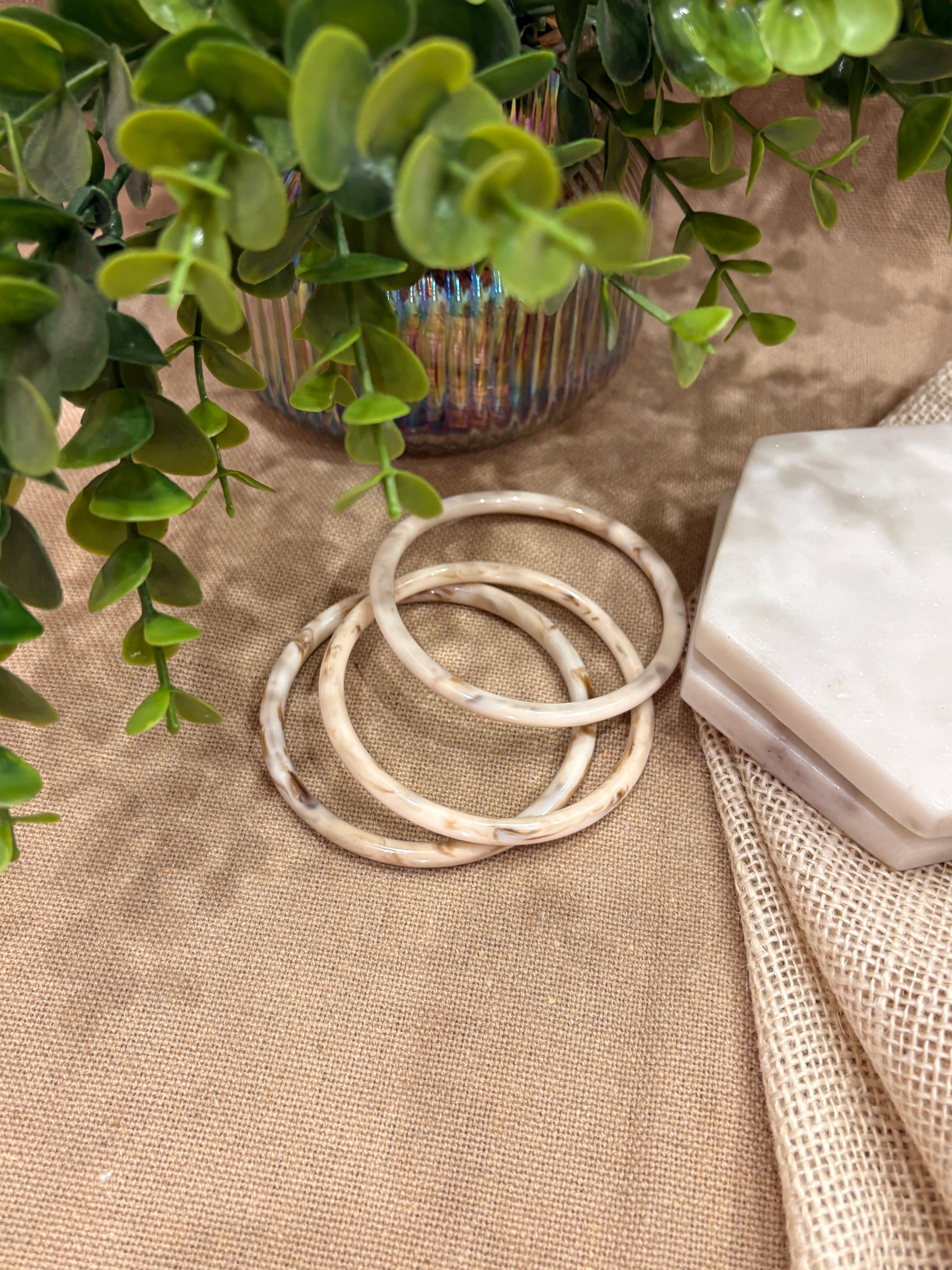 White Retro Solid Acrylic Bangle Pack of 3